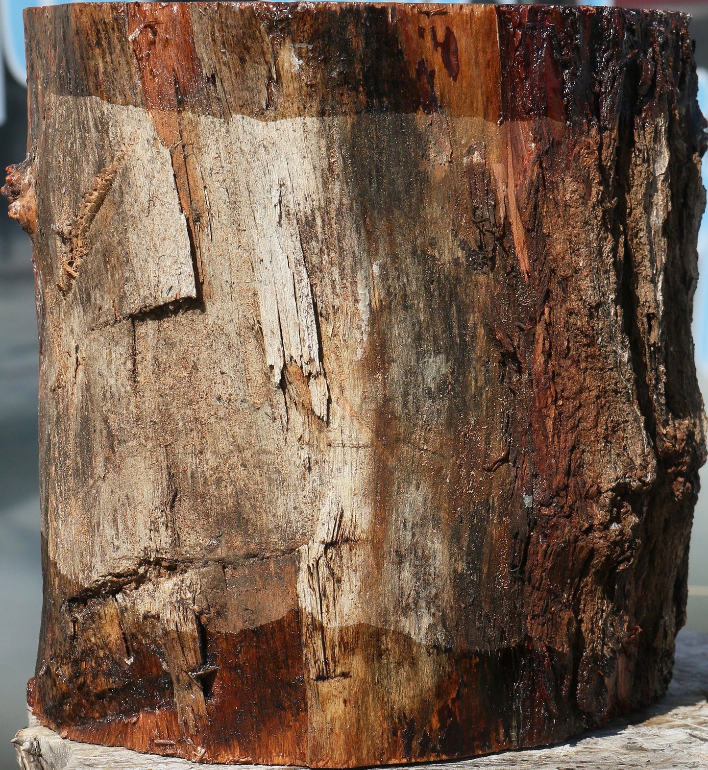 Brazilian Pepperwood has nice color and figure. This woodturning stock is no exception, with a range of colors and beautiful patterns that are truly unique. Bark inclusions and minor checks may be present. Freshly cut in January of 2025, this wood contains moisture, is completely wax sealed, and is best suited to twice turning for bowl making. Enjoy working this fine-grained exotic hardwood!