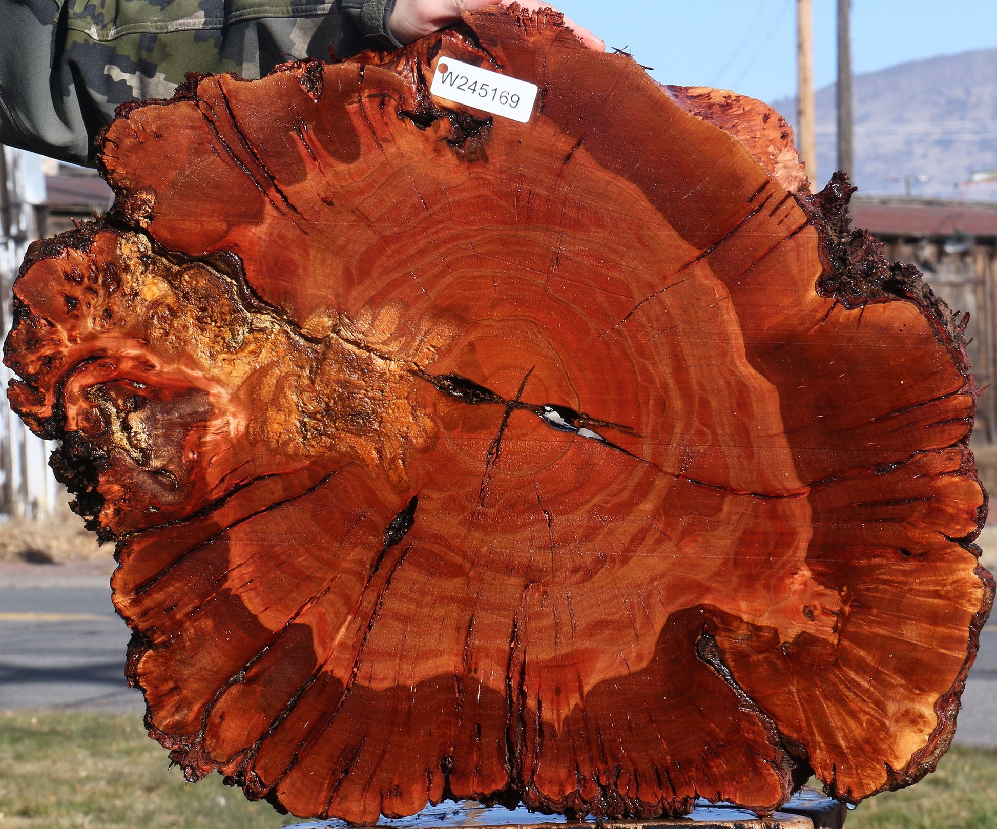 This Brazilian Pepperwood lumber has a range of colors and beautiful patterns that are truly unique. Natural edges are present and add a distinctive touch to your woodworking projects. Bark inclusions and checks are also present and can be seen in photos. These cookies are ideal for epoxy tables, decorative wall art, and other creative woodworking projects. This wood has been vacuum kiln dried and surfaced on two sides. Enjoy working this rare, fine-grained exotic hardwood! This piece has soft rot and voids. Please see pictures for details.