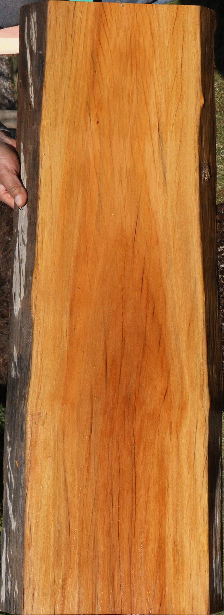 This piece has been kiln dried, surfaced on two sides, and is ready for use. This piece has checks and splits. Please see pictures for details.