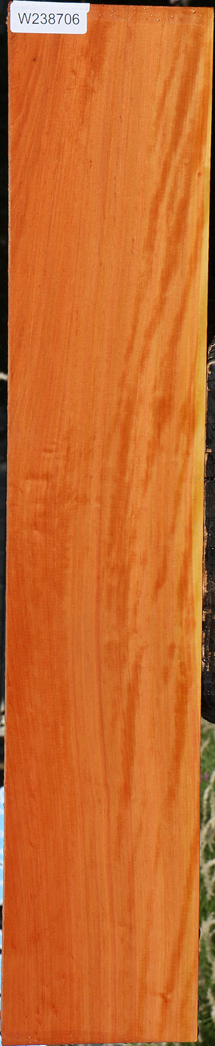 This beautiful, clean material has interlocked grain with ribbon figure which adds a nice 3-dimensional chatoyant shimmer. The color ranges from pink to reddish hues with some golden tones. It has a sweet and subtle fragrance. These pieces are kiln dried and surfaced on two sides. They may have a slight bow or twist up to 1/8”, usually on pieces over 36". Occasional surface checks may be present. Boards with "rustic" in the title contain many surface checks. The closed grain makes it easy to work with and it also takes a high polish! This piece has bug holes. Please see pictures for details.