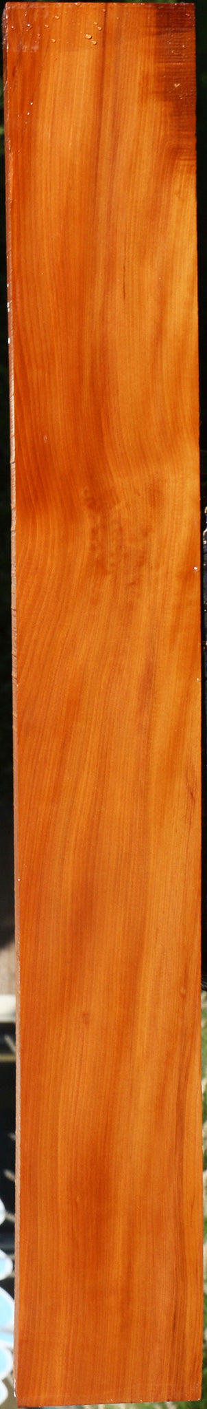 This beautiful, clean material has interlocked grain with ribbon figure which adds a nice 3-dimensional chatoyant shimmer. The color ranges from pink to reddish hues with some golden tones. It has a sweet and subtle fragrance. These pieces are kiln dried and surfaced on two sides. They may have a slight bow or twist up to 1/8”, usually on pieces over 36". Occasional surface checks may be present. Boards with "rustic" in the title contain many surface checks. The closed grain makes it easy to work with and it also takes a high polish!