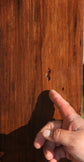 This high quality, chocolately-brown colored Peruvian Walnut is kiln dried and is smooth on two faces, having been surfaced on two sides with a spiral cutter head planer. Minor planer bite may be present on a few boards. The ends are clean and smooth. Boards over 36" long may have a slight 1/16" to 1/8" bow or twist. Some boards have fiddleback; the degree of figure ranges from board to board. All boards are very beautiful and take a nice natural luster. This hardwood species is ideal for your woodworking projects. This piece has bug holes, worm holes, inclusions, and a 1/16" bow. Please see pictures for details.
