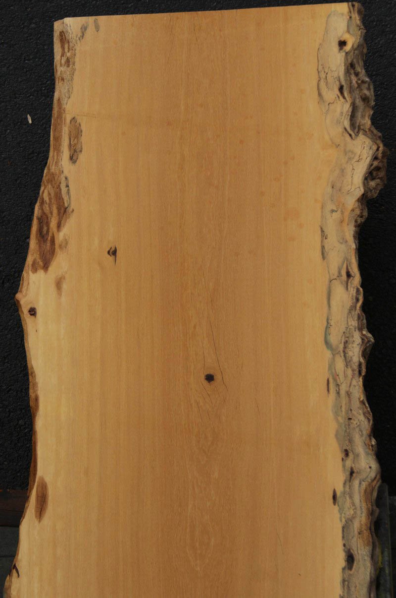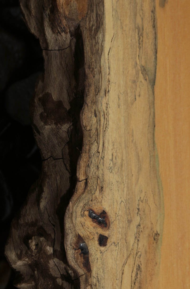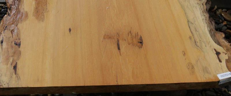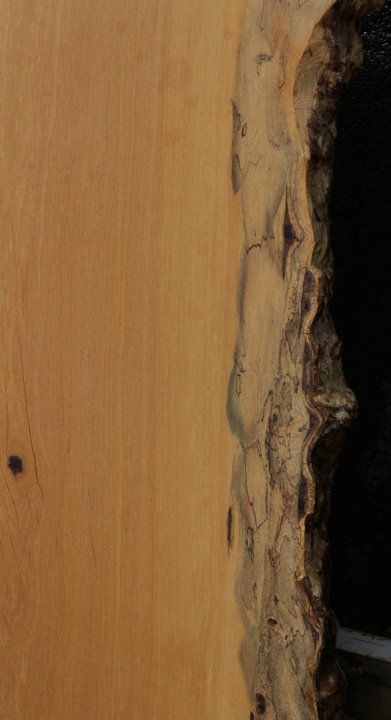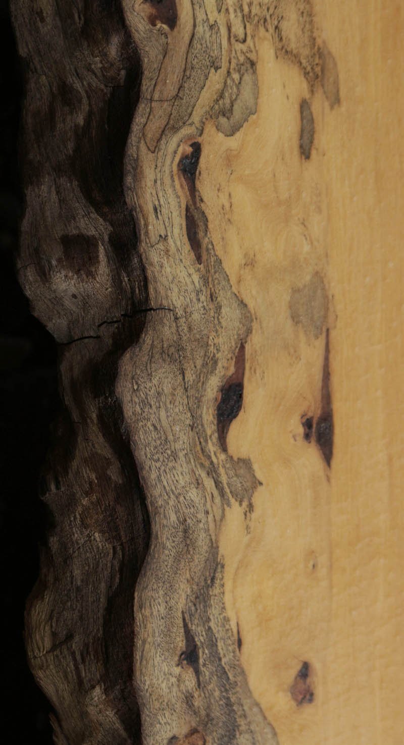 Piquiarana, a large, dense, South American hardwood, is ideally suited for a large table or bar top. Figured live edges add character and beauty to this unique species. This slab has been vacuum kiln dried and planed on two sides. There may be areas of minor planer hit/miss. Both faces contain inclusions. Drying checks and splits are present on both faces and ends. Specific gravity is 0.72, as compared to Walnut at 0.55, making this a very durable choice for a high traffic area. Enjoy creating a lovely project with this splendid South American beauty! Measures 80.2 Board Feet with an average width of 38" measured on the widest face. Spalted and figured live edge. This piece has a 1/8" bow with some checks on the faces. There will be inclusions present as well as surface end checks and splits. This piece also has internal checks. Epoxy resin will be needed to fill checks and voids. This item must be shipped freight.