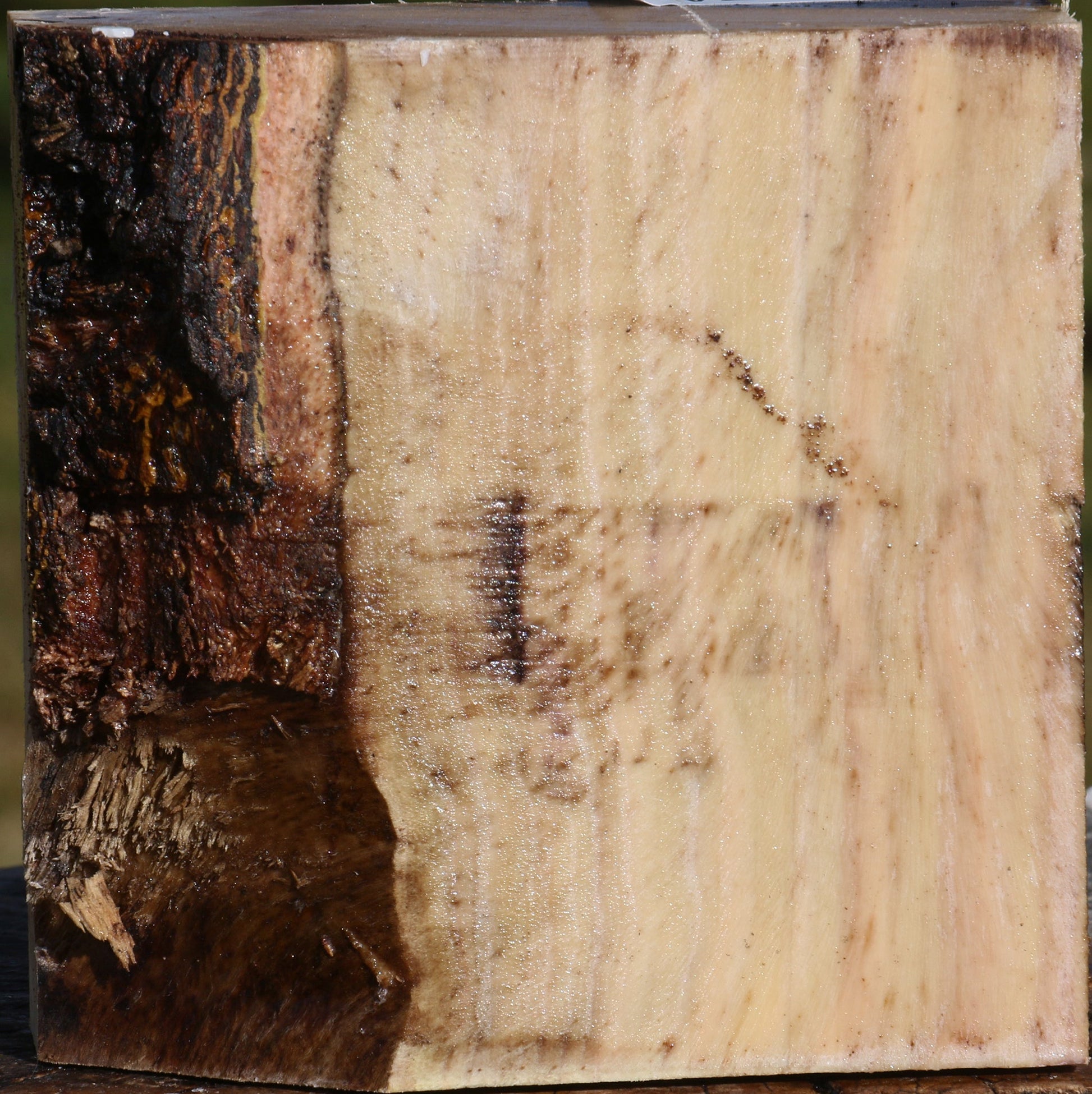 We've reclaimed this beautiful hardwood from orchards in California. Ranging from green to brown and red, these logs are the largest that we have ever had in 26 years! Pistachio is dense and turns to a high natural polish. This wood was freshly cut in December of 2025. A minor end check, surface check, or rough edge or live edge may be present. This material is ready for twice turning. Get yours before this high demand product sells out. This piece has a partial live edge. Please see pictures for details.