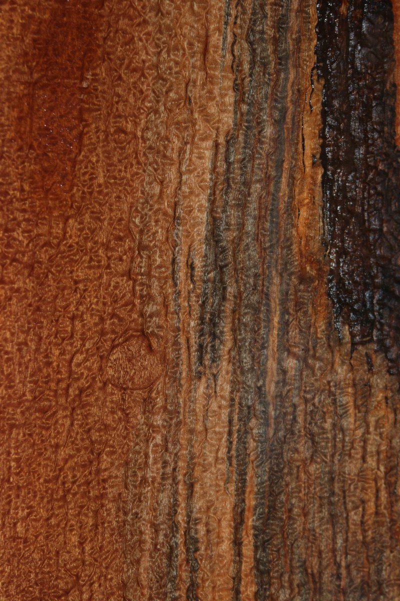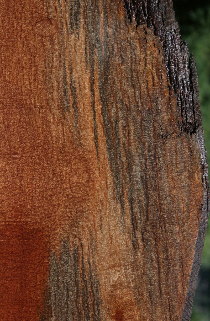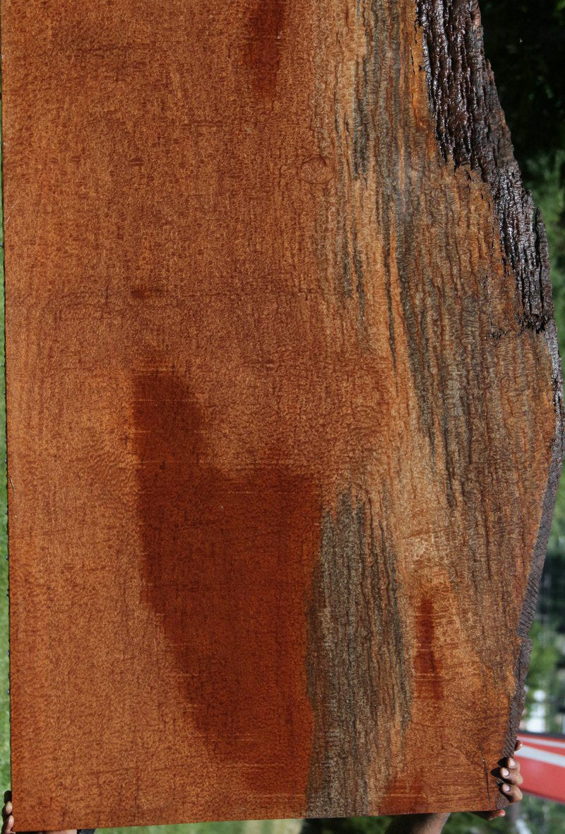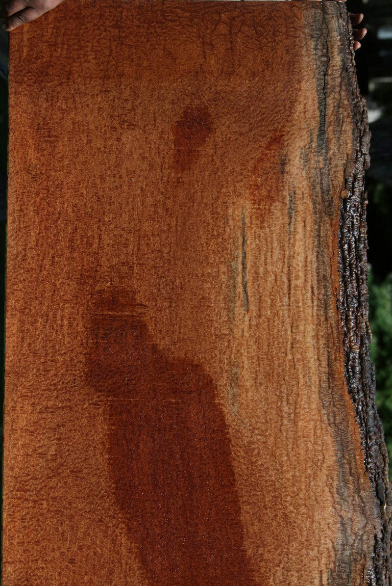 This exceptional African Sapele lumber is kiln dried, surfaced on two sides, and ready to use. Common uses for this high end material are guitars, ukuleles, and other fine woodworking projects such as furniture and boxes. A beautiful, tight “Pomelle” figure is present in most boards. This is the most figured Sapele lumber we’ve had in 20 years! If you are looking for something outstanding for your next exotic wood project, this African Sapele is an alluring choice! This slab has some planer skip on both faces, but mostly limited to the back face. It has a rustic live edge with checks and splits. About 80% of the slab could be used for guitars or itwould make a beautiful table or countertop! (This piece requires freight shipping due to its size. This item does not qualify for free shipping.)