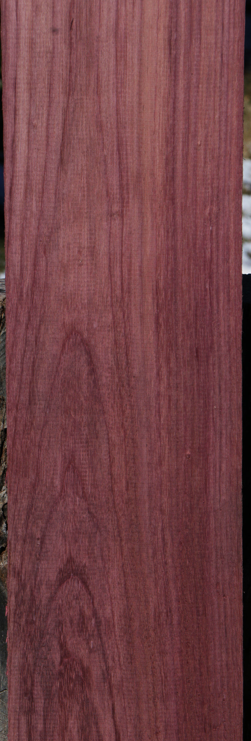 Vibrant, and ideal for fine woodworking, this Purpleheart has rich, deep color. When working with Purpleheart, note that fresh cuts will reveal brown colored wood. The rich purple color will return with a few hours of UV light exposure. An occasional surface check may be present. Boards over 3 ft. long may have a slight bow or twist. This kiln dried, surfaced wood is ready to use!