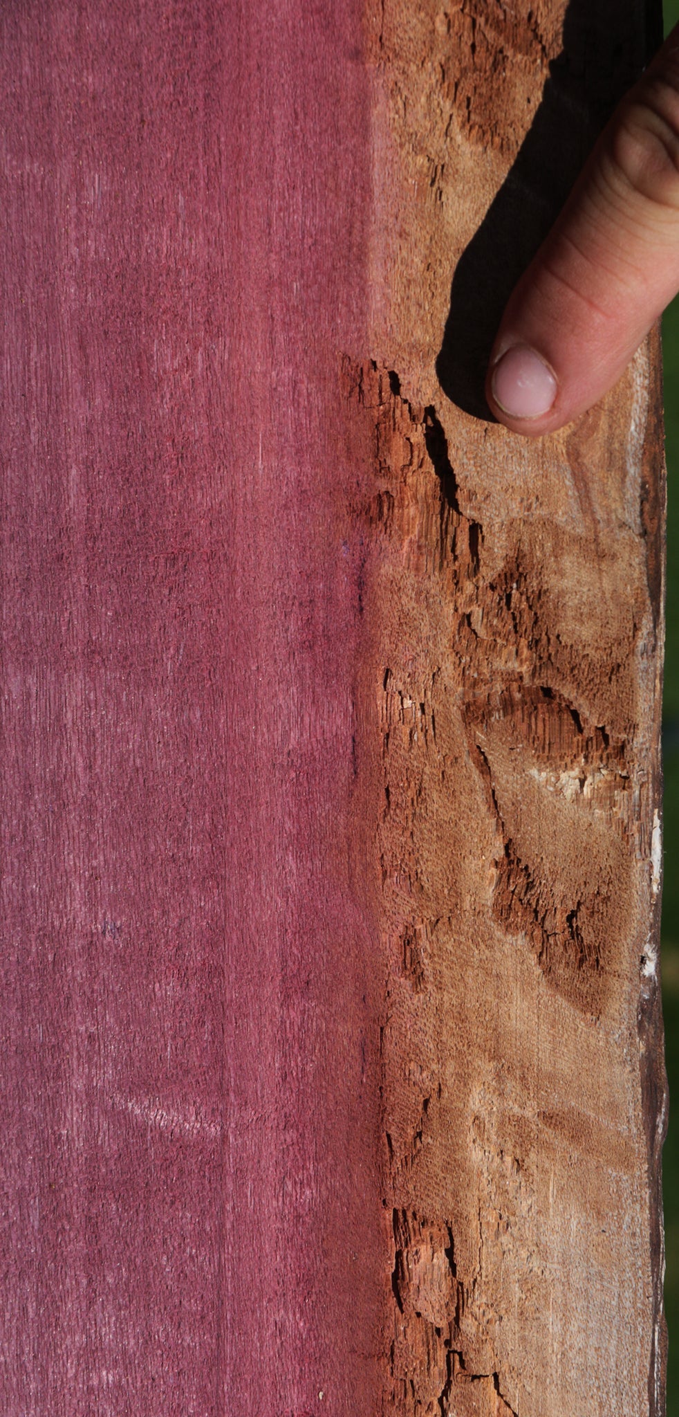 This piece has been kiln dried, surfaced on two sides, and is ready for use. This piece has bug holes and splits. Please see pictures for details.