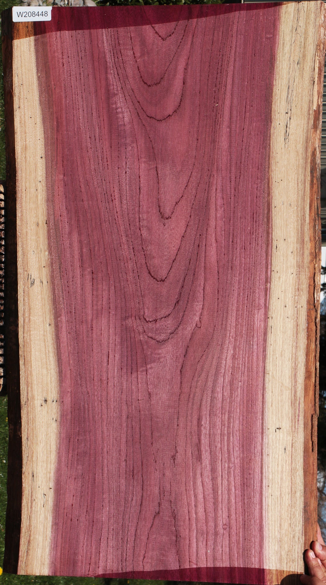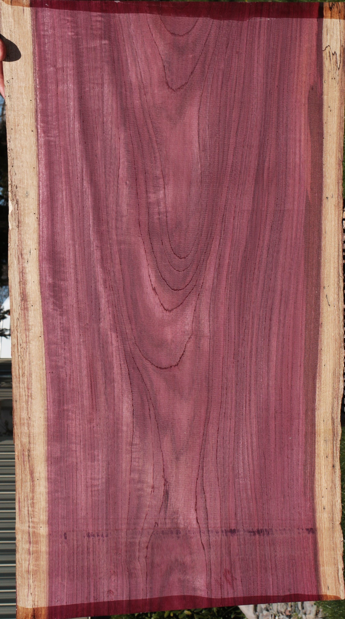Vibrant, and ideal for fine woodworking, this Purpleheart has rich, deep color. When working with Purpleheart, note that fresh cuts will reveal brown-colored wood. The rich purple color will return with a few hours of UV light exposure. An occasional surface check may be present. Boards over 3 ft. long may have a slight bow or twist. This kiln dried, surfaced wood is ready to use! Live edges add a unique touch to this wood. This piece has bug holes. Please see pictures for details.