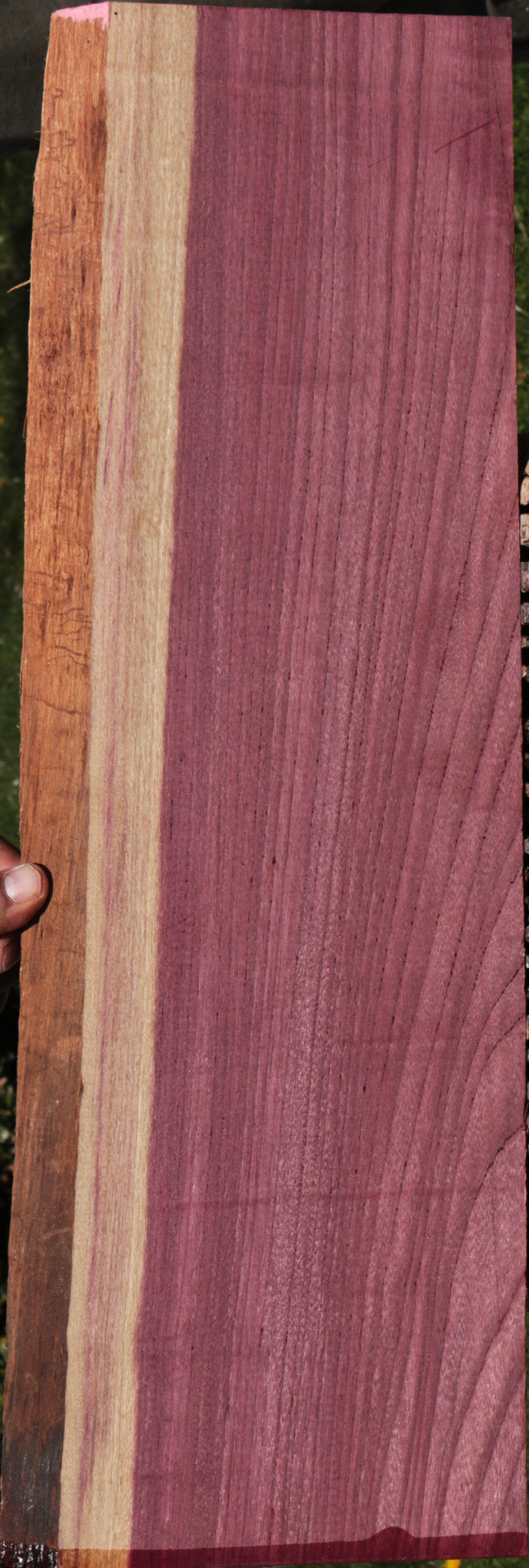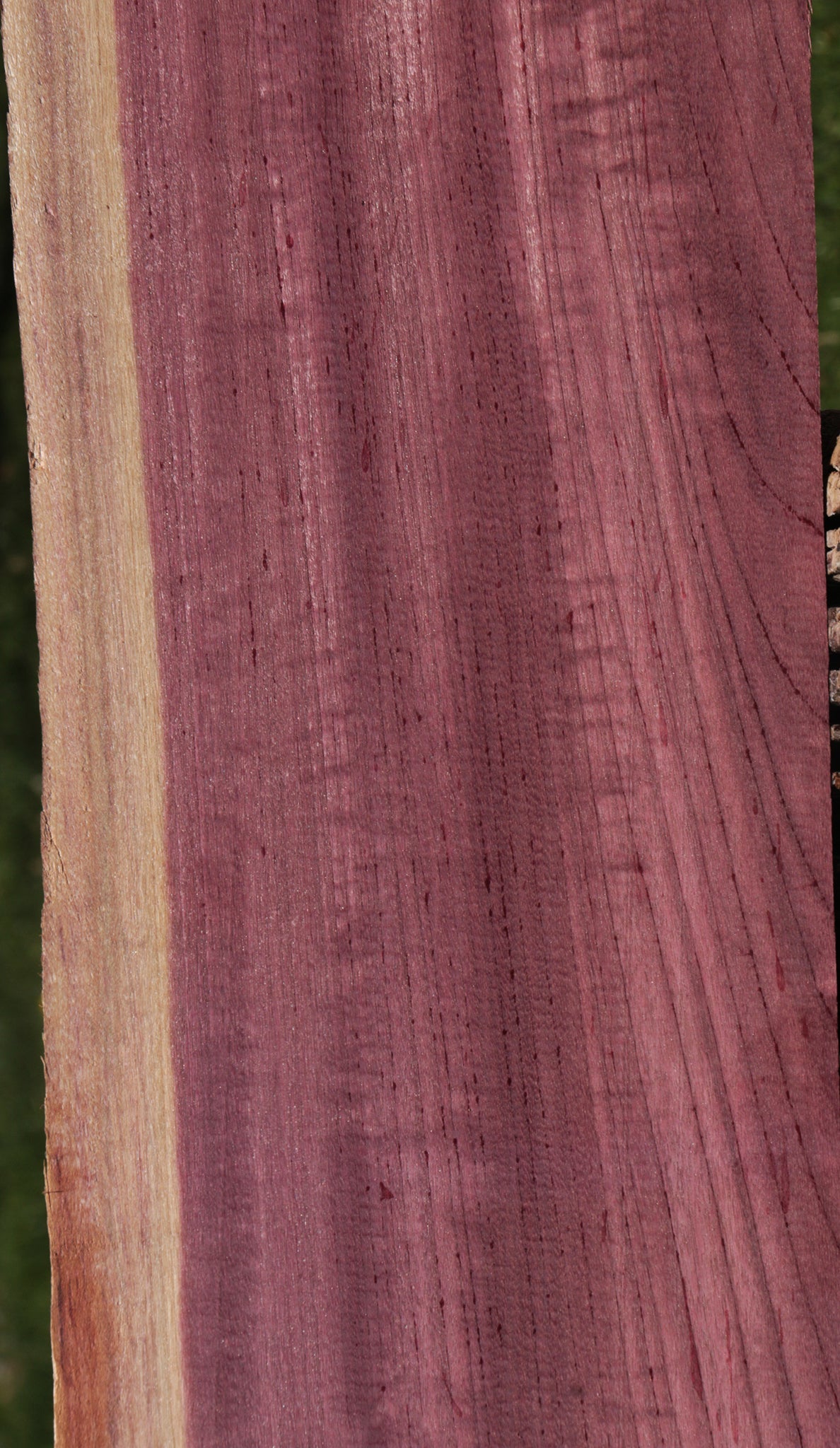 Vibrant, and ideal for fine woodworking, this Purpleheart has rich, deep color. When working with Purpleheart, note that fresh cuts will reveal brown-colored wood. The rich purple color will return with a few hours of UV light exposure. An occasional surface check may be present. Boards over 3 ft. long may have a slight bow or twist. This kiln dried, surfaced wood is ready to use! Live edges add a unique touch to this wood.