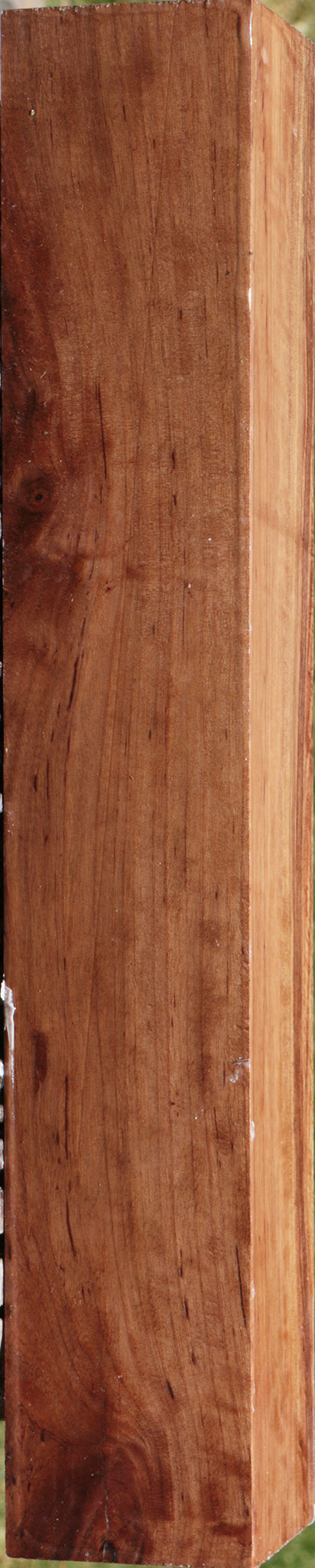 Curly Pyinma can contain the most amazing 3-D curl we’ve ever seen! This turning wood has been partially air dried for 3.5 years (as of June 2024), is completely wax sealed, and contains residual moisture. Some spalting or minor checking may be present, but this can be remedied with CA glue. Please leave wax on the wood until use to avoid checking. Beautiful luster and sheen as well as fine grain with wonderful workability make this an exceptional choice for woodturning projects. This is one of the owner's favorite woods! The depth of luster and curl is astounding. This piece has inclusions. Please see pictures for details.
