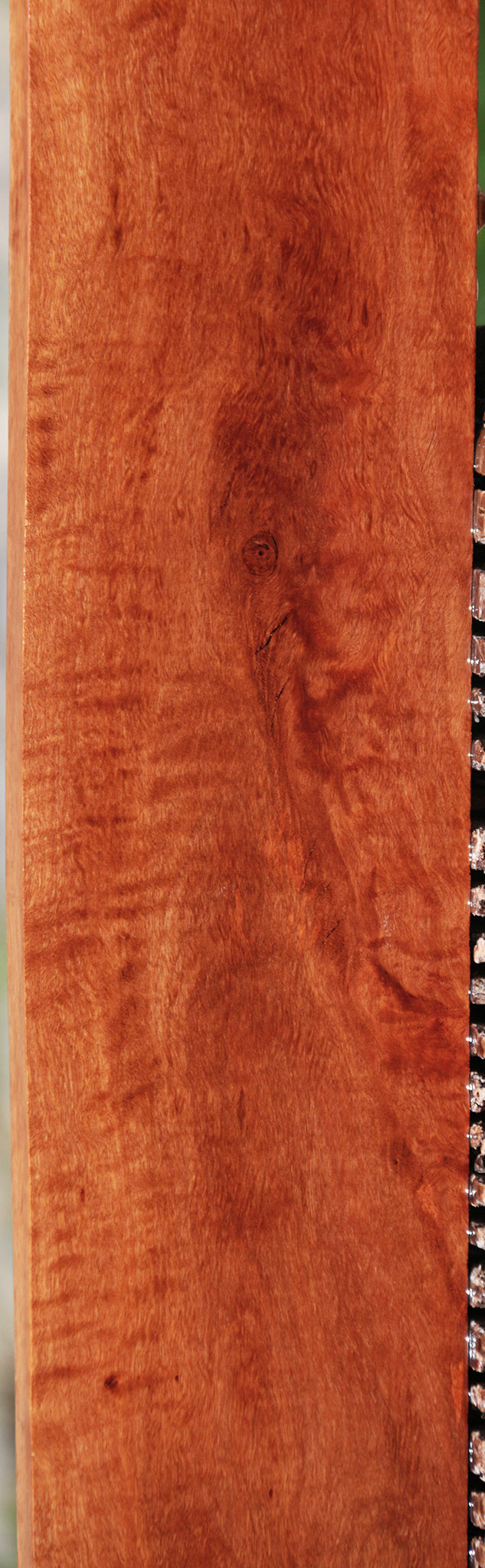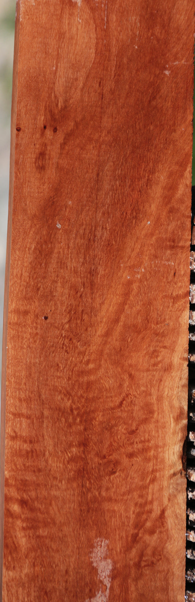 This tropical Rambutan lumber is kiln dried, surfaced on two sides and ready to use. A few minor checks, inclusions, or planer bite may be present. This wood is well figured and has rich, beautiful color. A 1/16" to 1/8" bow or twist may be present in boards over 36" in length. Rambutan is a dense hardwood that makes stunning woodworking projects! This piece has checks and inclusions. Please see pictures for details.