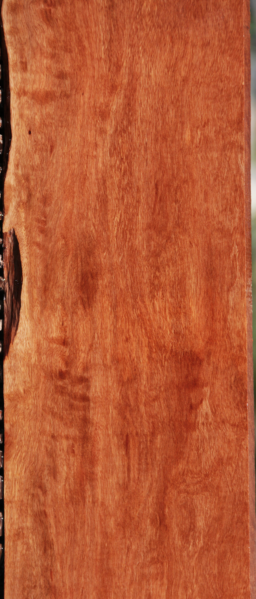 This tropical Rambutan lumber is kiln dried, surfaced on two sides and ready to use. A few minor checks, inclusions, or planer bite may be present. This wood is well figured and has rich, beautiful color. A 1/16" to 1/8" bow or twist may be present in boards over 36" in length. Rambutan is a dense hardwood that makes stunning woodworking projects! This piece has a partial live edge, checks, and inclusions. Please see pictures for details.