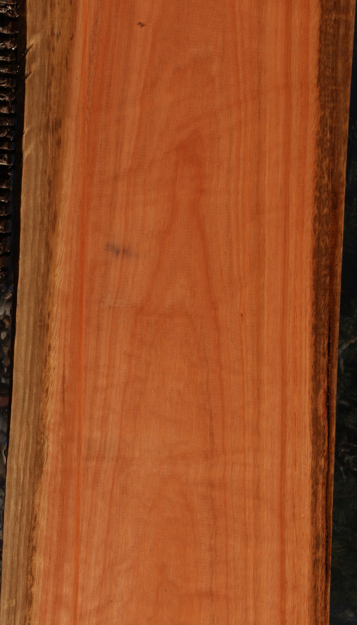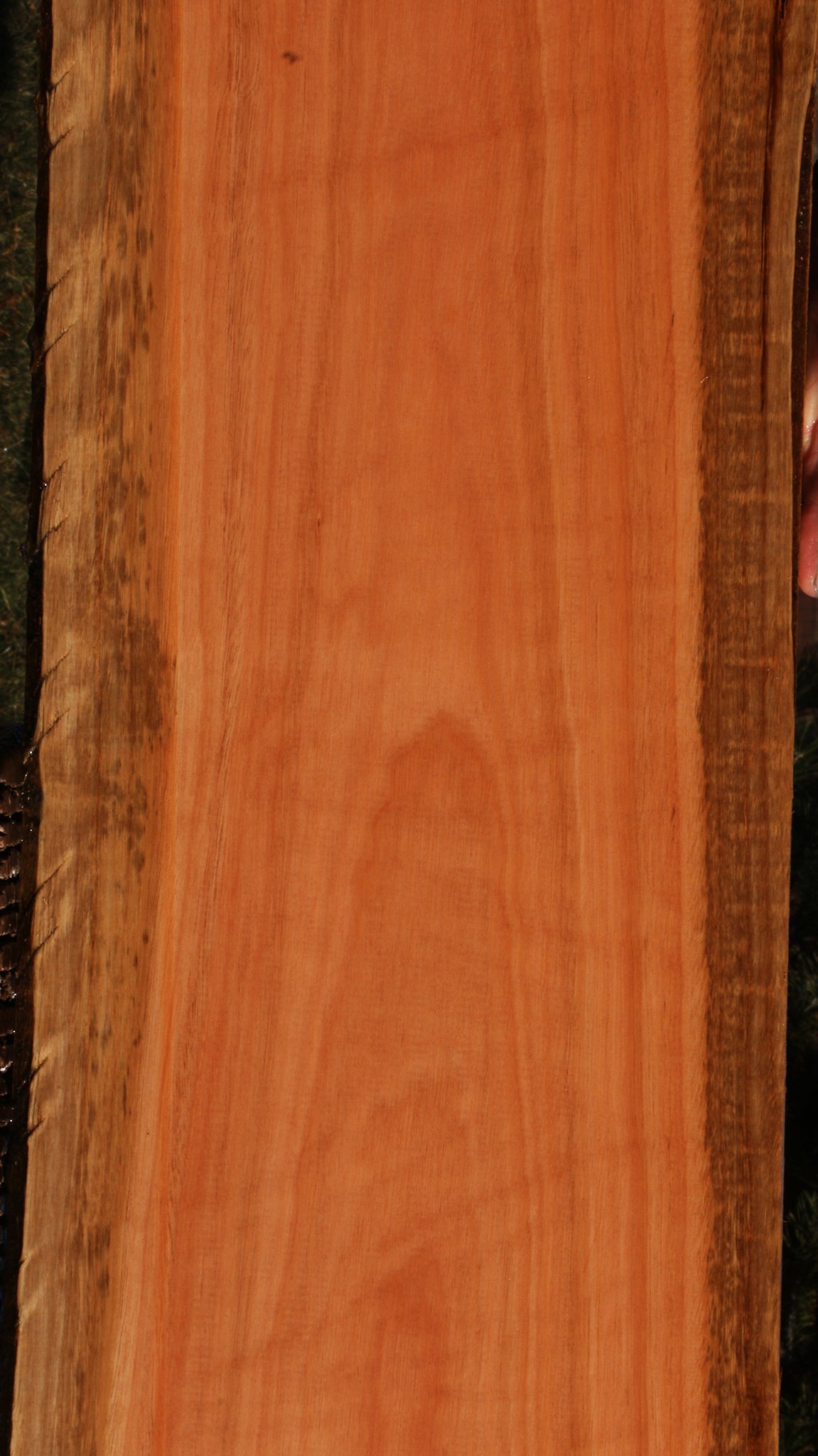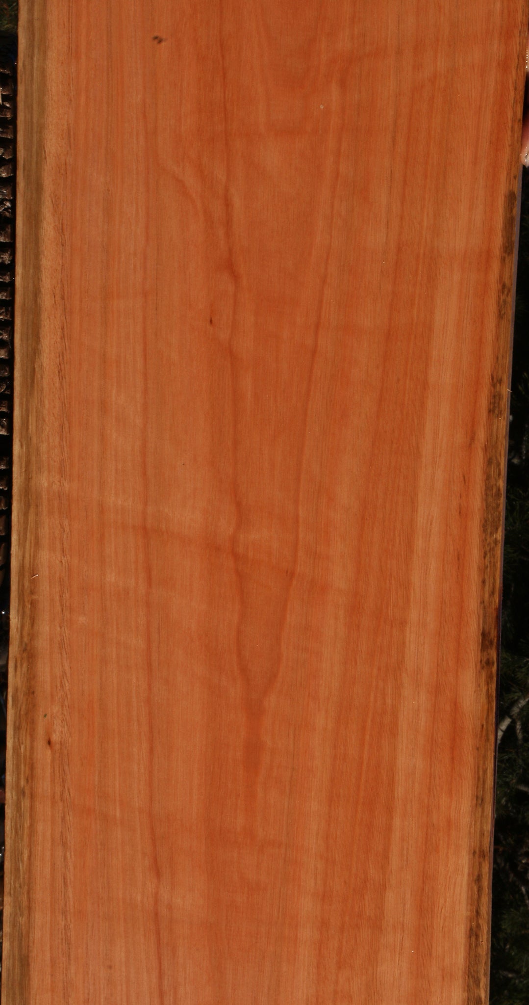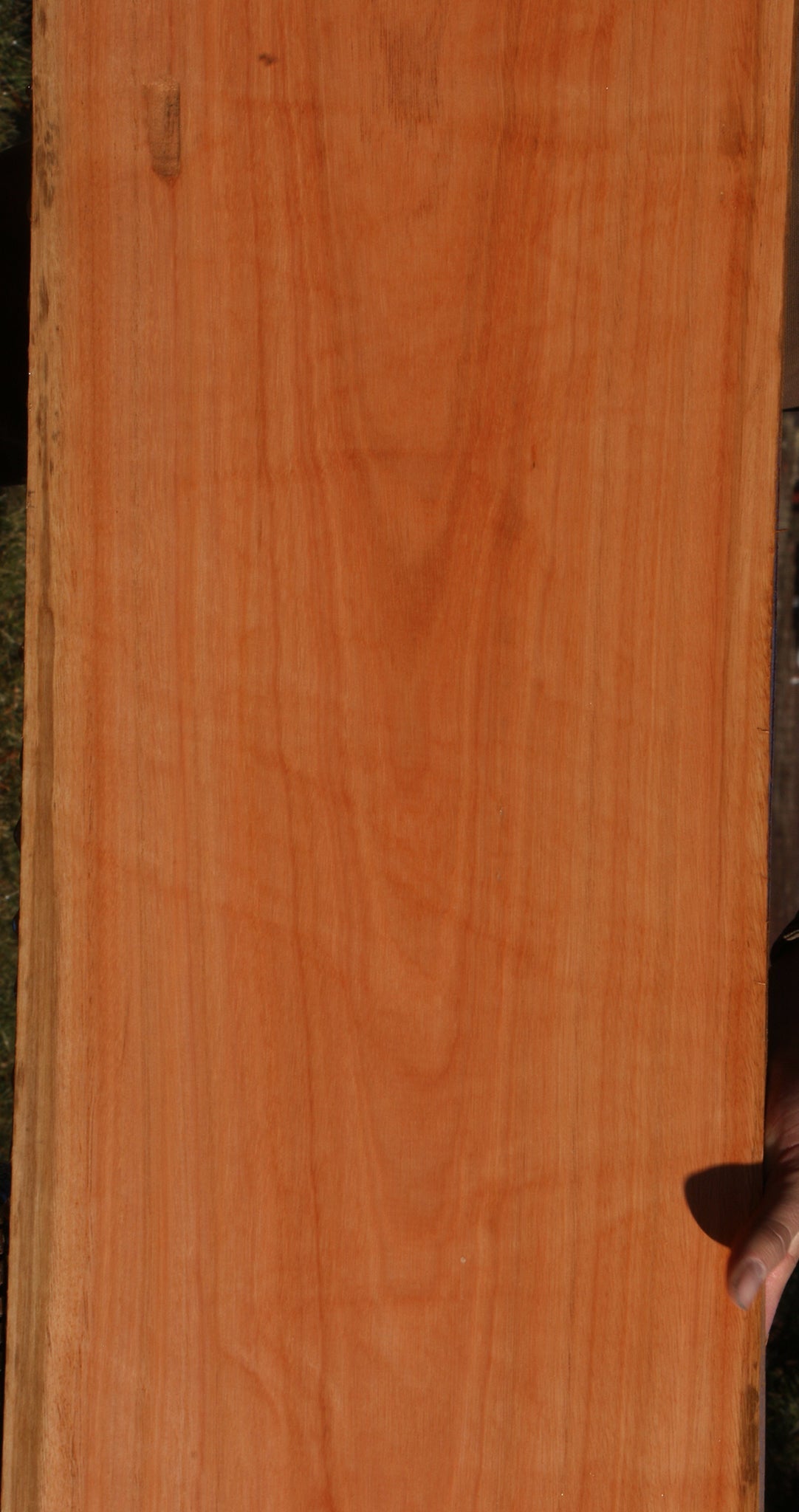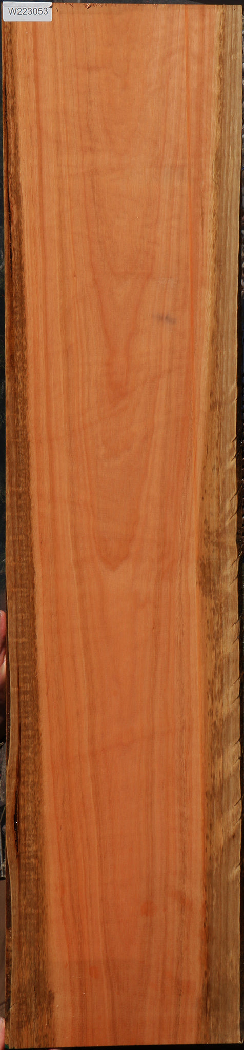 This Red Grandis wood is kiln dried, has been surfaced on two sides, and is ready to use. There may be an occasional small surface or end check present. Boards over 36" long may have a slight bow or twist up to 1/8". Some boards may have minor planer skip. Red Grandis is a unique, dense, and durable exotic hardwood that is sustainably plantation grown in Brazil. It works well, glues well, and finishes nicely. This piece has a partial rough edge. Please see pictures for details.
