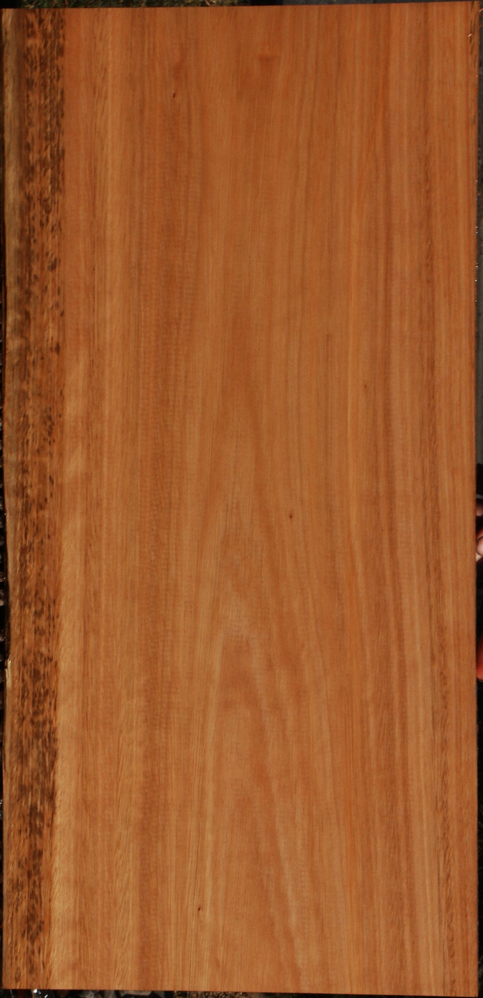This Red Grandis wood is kiln dried, has been surfaced on two sides, and is ready to use. There may be an occasional small surface or end check present. Boards over 36" long may have a slight bow or twist up to 1/8". Some boards may have minor planer skip. Red Grandis is a unique, dense, and durable exotic hardwood that is sustainably plantation grown in Brazil. It works well, glues well, and finishes nicely. This piece has a partial rough edge. Please see pictures for details.