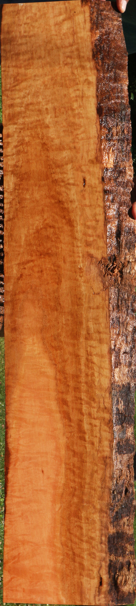 Red Ironbark is an Australian wood that cuts nicely and takes a naturally high polish because of its density and the presence of oils. Fine, interlocked grain also contributes to the nice finish. This wood is kiln dried and surfaced on two sides. A minor surface or end check may be present. 1/16" to 1/8" bow may be present in boards over 36". Woodworkers will enjoy the stunning finish and rich color of this exotic hardwood. This piece has pin holes, checks, and inclusions. Please see pictures for details.