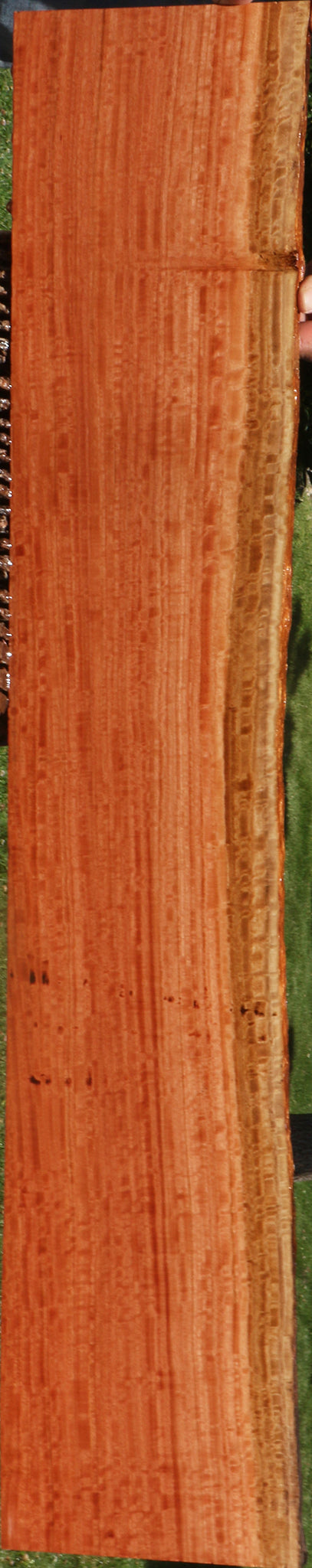 Red Ironbark is an Australian wood that cuts nicely and takes a naturally high polish because of its density and the presence of oils. Fine, interlocked grain also contributes to the nice finish. This wood is kiln dried and surfaced on two sides. A minor surface or end check may be present. 1/16" to 1/8" bow may be present in boards over 36". Woodworkers will enjoy the stunning finish and rich color of this exotic hardwood. This piece has machine marks. Please see pictures for details.