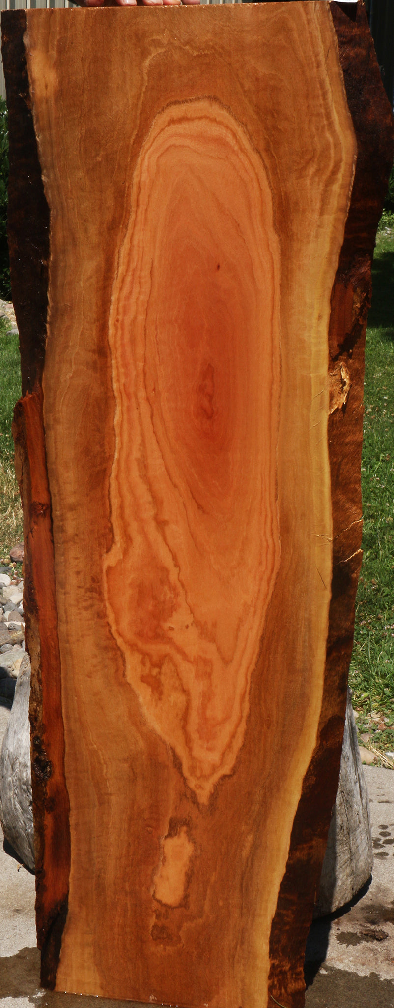 Red Ironbark is an Australian wood that cuts nicely and takes a naturally high polish because of its density and the presence of oils. Fine, interlocked grain also contributes to the nice finish. This wood is kiln dried and surfaced on two sides. A minor surface or end check may be present. 1/16" to 1/8" bow may be present in boards over 36". Woodworkers will enjoy the stunning finish and rich color of this exotic hardwood. This piece has checks and inclusions. Please see pictures for details.