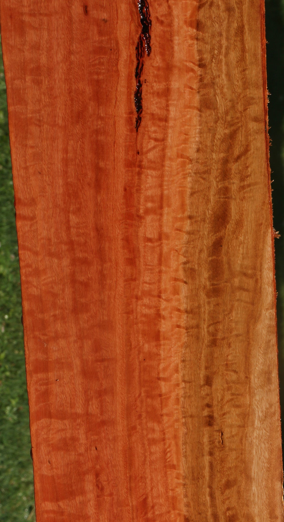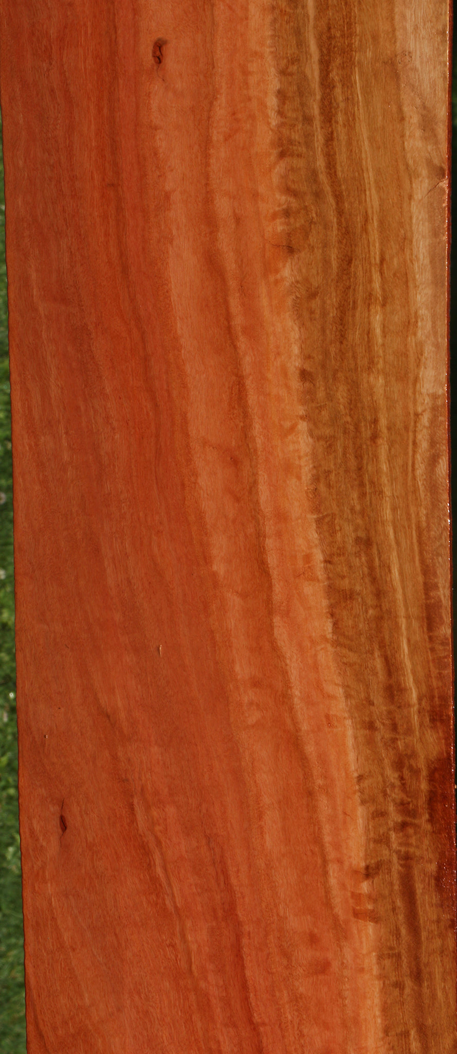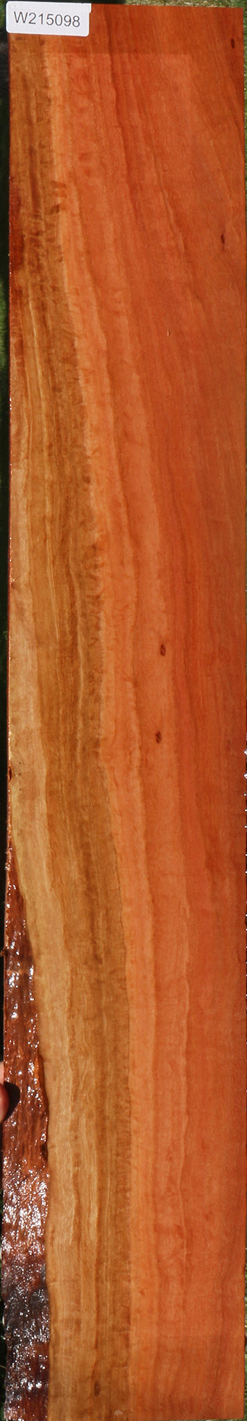Red Ironbark is an Australian wood that cuts nicely and takes a naturally high polish because of its density and the presence of oils. Fine, interlocked grain also contributes to the nice finish. This wood is kiln dried and surfaced on two sides. A minor surface or end check may be present. 1/16" to 1/8" bow may be present in boards over 36". Woodworkers will enjoy the stunning finish and rich color of this exotic hardwood. This piece has inclusions and a partial live edge. Please see pictures for details.
