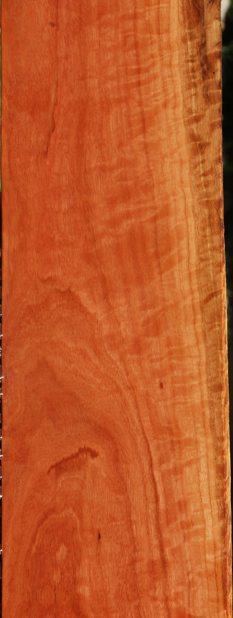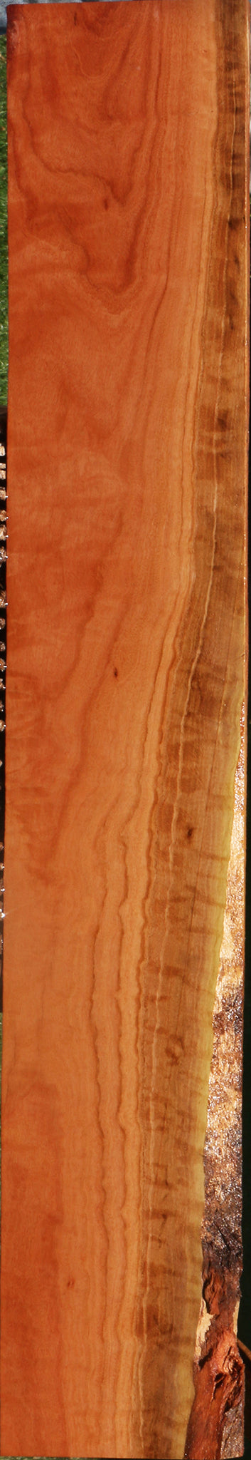 Red Ironbark is an Australian wood that cuts nicely and takes a naturally high polish because of its density and the presence of oils. Fine, interlocked grain also contributes to the nice finish. This wood is kiln dried and surfaced on two sides. A minor surface or end check may be present. 1/16" to 1/8" bow may be present in boards over 36". Woodworkers will enjoy the stunning finish and rich color of this exotic hardwood. This piece has a partial live edge and inclusions. Please see pictures for details.