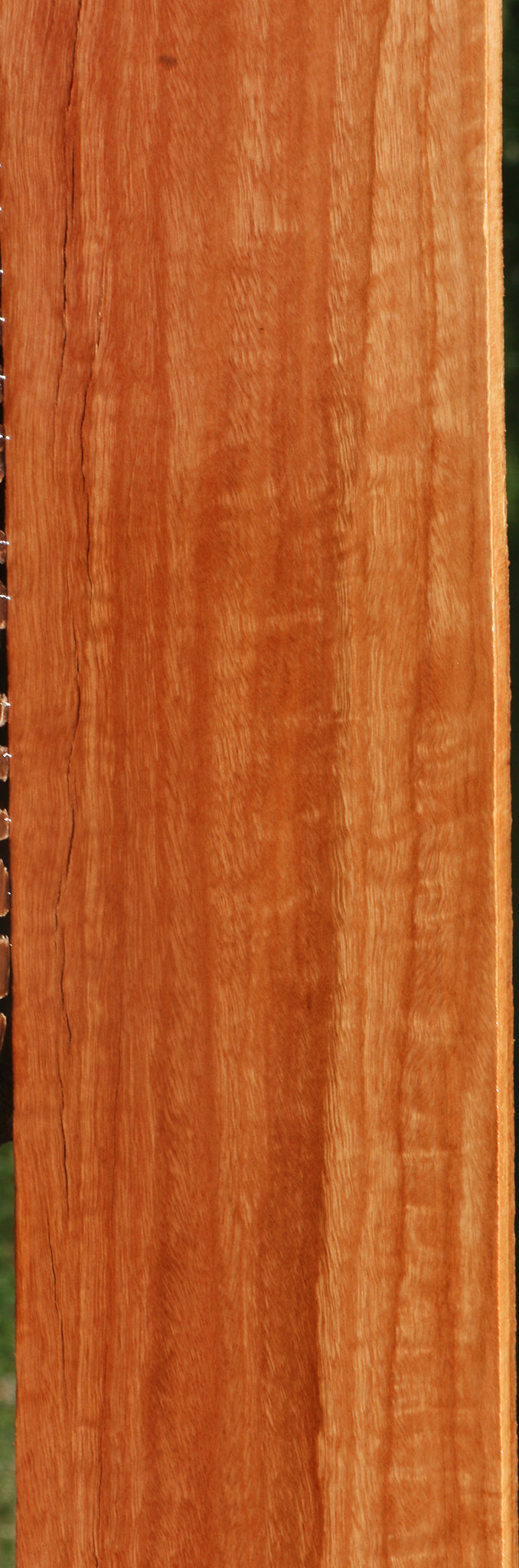 Red Ironbark is an Australian wood that cuts nicely and takes a naturally high polish because of its density and the presence of oils. Fine, interlocked grain also contributes to the nice finish. This wood is kiln dried and surfaced on two sides. A minor surface or end check may be present. 1/16" to 1/8" bow may be present in boards over 36". Woodworkers will enjoy the stunning finish and rich color of this exotic hardwood. This piece has splits, checks, and inclusions. Please see pictures for details.
