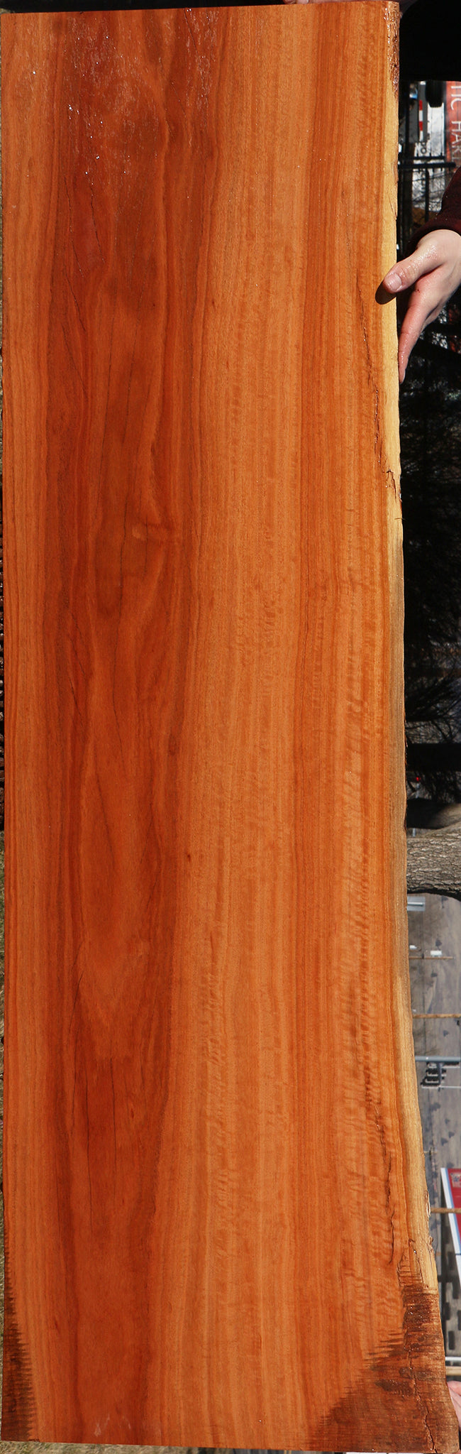 Red Ironbark is an Australian wood that cuts nicely and takes a naturally high polish because of its density and the presence of oils. Fine, interlocked grain also contributes to the nice finish. This wood is kiln dried and surfaced on two sides. A minor surface or end check may be present. Items titled "rustic" contain numerous surface checks. 1/16" to 1/8" bow may be present in boards over 36". Woodworkers will enjoy the stunning finish and rich color of this exotic hardwood. This piece has splits, checks, inclusions, and planer skip. Please see pictures for details.