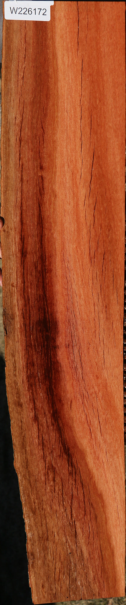 Red Ironbark is an Australian wood that cuts nicely and takes a naturally high polish because of its density and the presence of oils. Fine, interlocked grain also contributes to the nice finish. This wood is kiln dried and surfaced on two sides. A minor surface or end check may be present. Items titled "rustic" contain numerous surface checks. 1/16" to 1/8" bow may be present in boards over 36". Woodworkers will enjoy the stunning finish and rich color of this exotic hardwood. This piece has planer skip. Please see pictures for details.