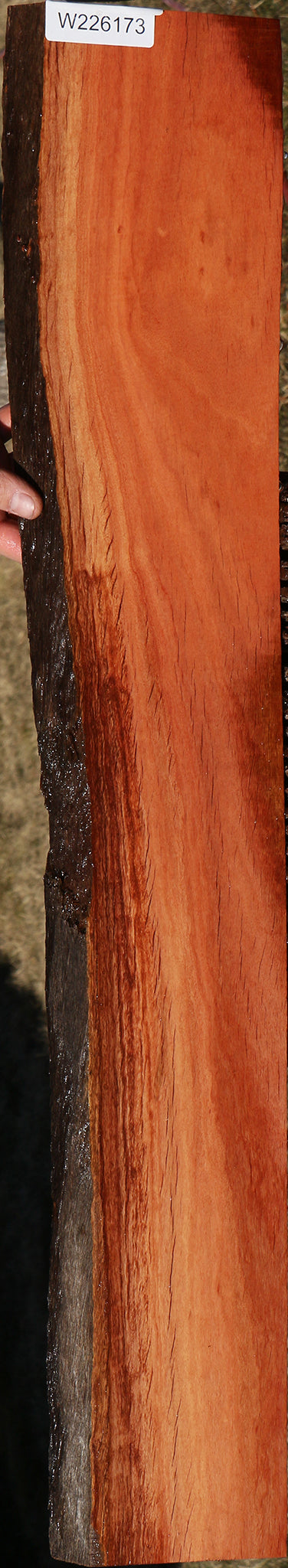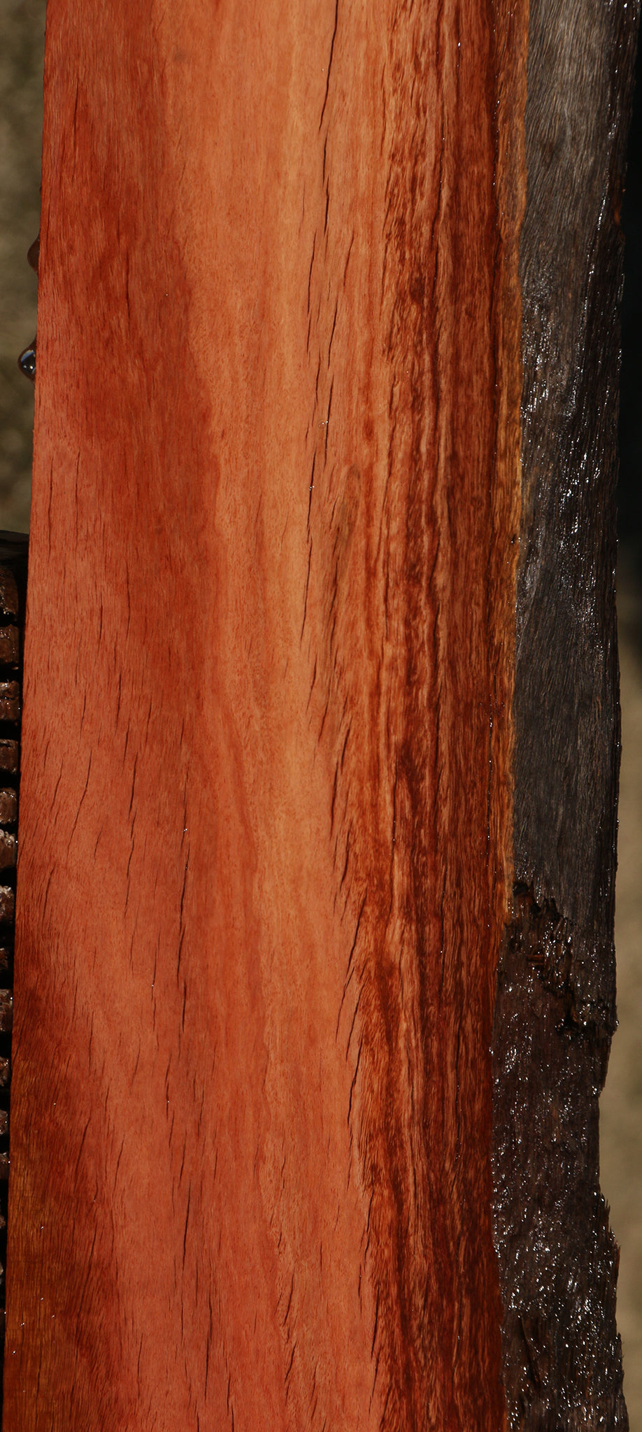 Red Ironbark is an Australian wood that cuts nicely and takes a naturally high polish because of its density and the presence of oils. Fine, interlocked grain also contributes to the nice finish. This wood is kiln dried and surfaced on two sides. A minor surface or end check may be present. Items titled "rustic" contain numerous surface checks. 1/16" to 1/8" bow may be present in boards over 36". Woodworkers will enjoy the stunning finish and rich color of this exotic hardwood. This piece has splits. Please see pictures for details.