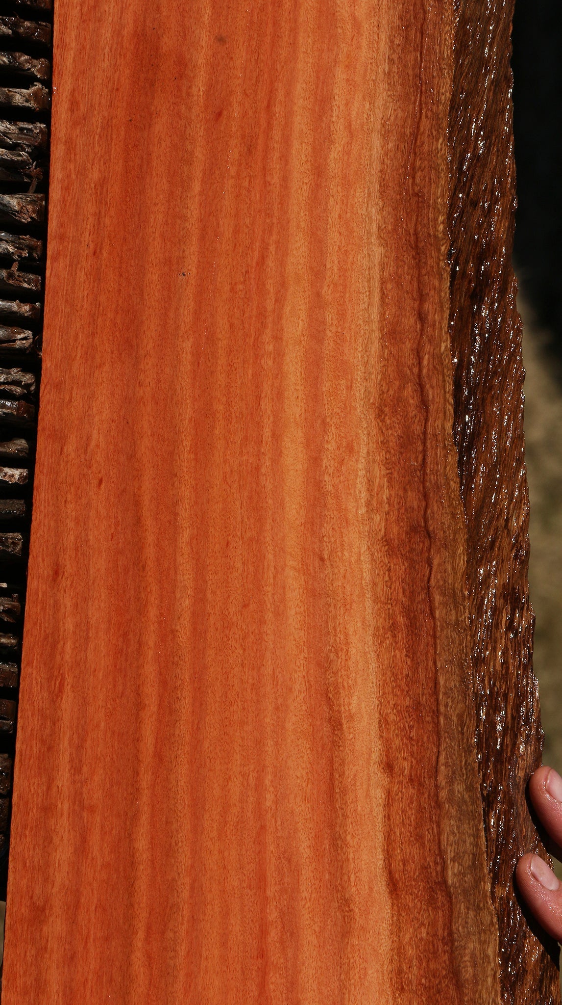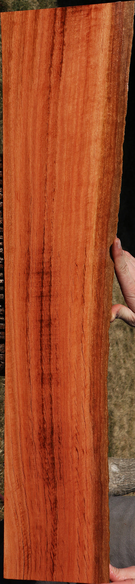 Red Ironbark is an Australian wood that cuts nicely and takes a naturally high polish because of its density and the presence of oils. Fine, interlocked grain also contributes to the nice finish. This wood is kiln dried and surfaced on two sides. A minor surface or end check may be present. Items titled "rustic" contain numerous surface checks. 1/16" to 1/8" bow may be present in boards over 36". Woodworkers will enjoy the stunning finish and rich color of this exotic hardwood. This piece has checks and splits. Please see pictures for details.
