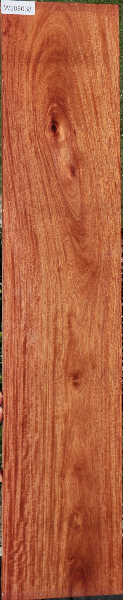 This Santos Mahogany wood has been hand selected for color and figure. It has been kiln dried and surfaced on two sides. Some boards are suitable for guitars or high end woodworking. This lumber has wonderful workability. A slight 1/16" to 1/8" bow or twist may be present in boards over 36" long. This piece has checks and knots. Please see pictures for details.