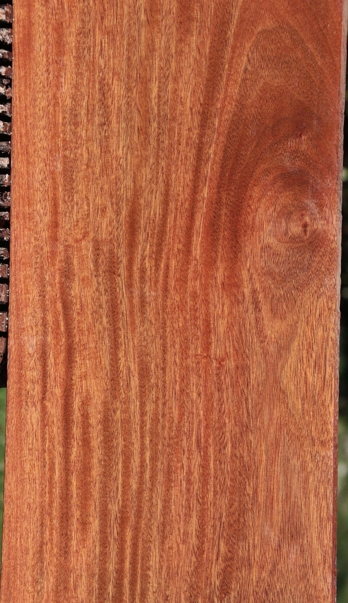 This Santos Mahogany wood has been hand selected for color and figure. It has been kiln dried and surfaced on two sides. Some boards are suitable for guitars or high end woodworking. This lumber has wonderful workability. A slight 1/16" to 1/8" bow or twist may be present in boards over 36" long. This piece has a staple on the edge grain. Please see pictures for details.