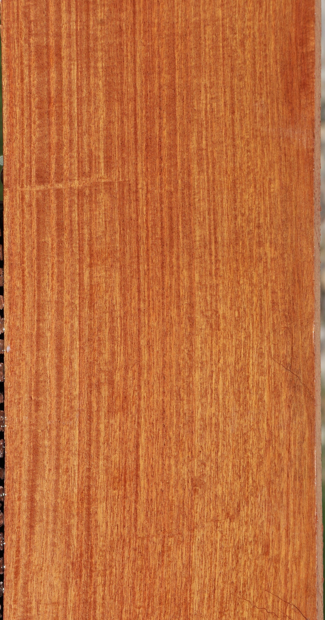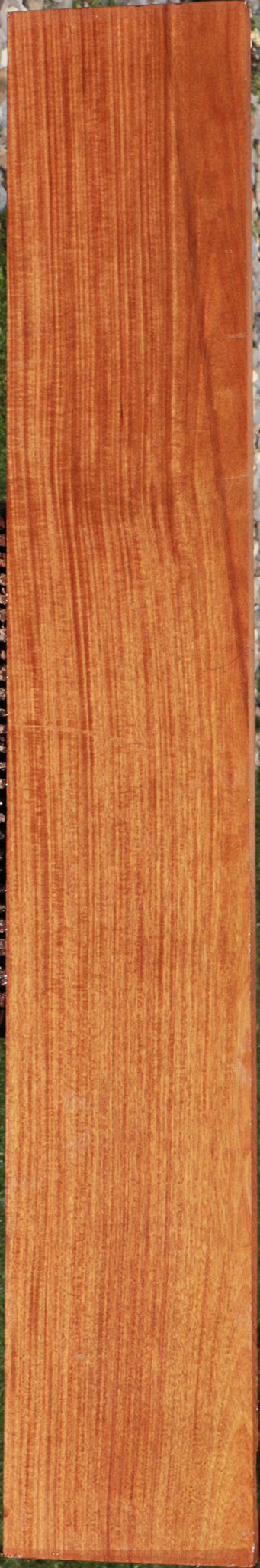 This Santos Mahogany wood has been hand selected for color and figure. It has been kiln dried and surfaced on two sides. Some boards are suitable for guitars or high end woodworking. This lumber has wonderful workability. A slight 1/16" to 1/8" bow or twist may be present in boards over 36" long. This piece has checks. Please see pictures for details.