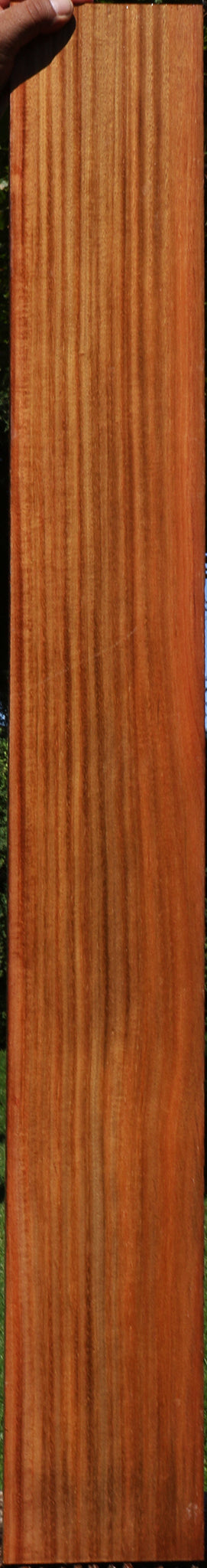 This Santos Mahogany wood has been hand selected for color and figure. It has been kiln dried and surfaced on two sides. Some boards are suitable for guitars or high end woodworking. This lumber has wonderful workability. A slight 1/16" to 1/8" bow or twist may be present in boards over 36" long. This piece has inclusions. Please see pictures for details.