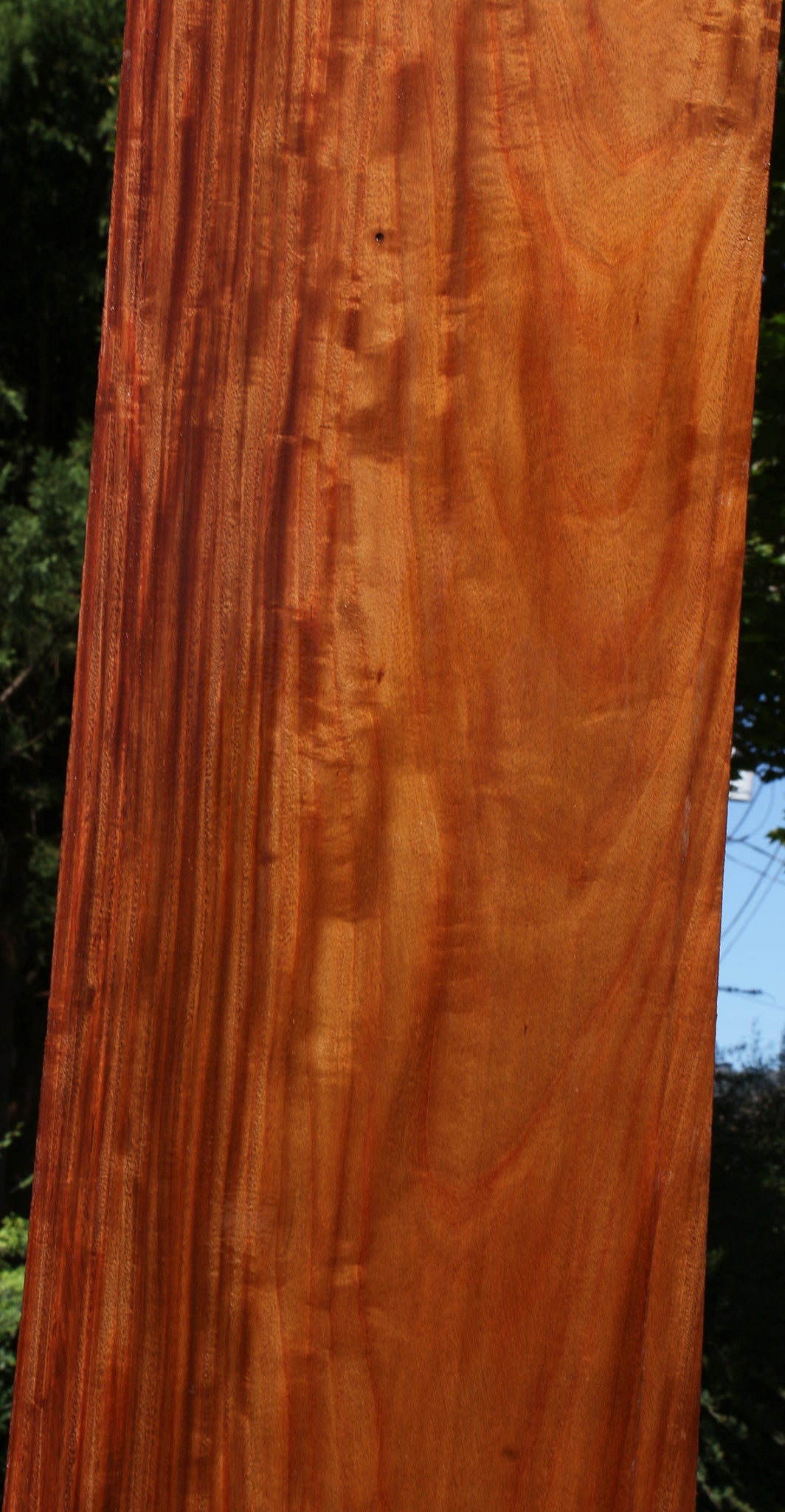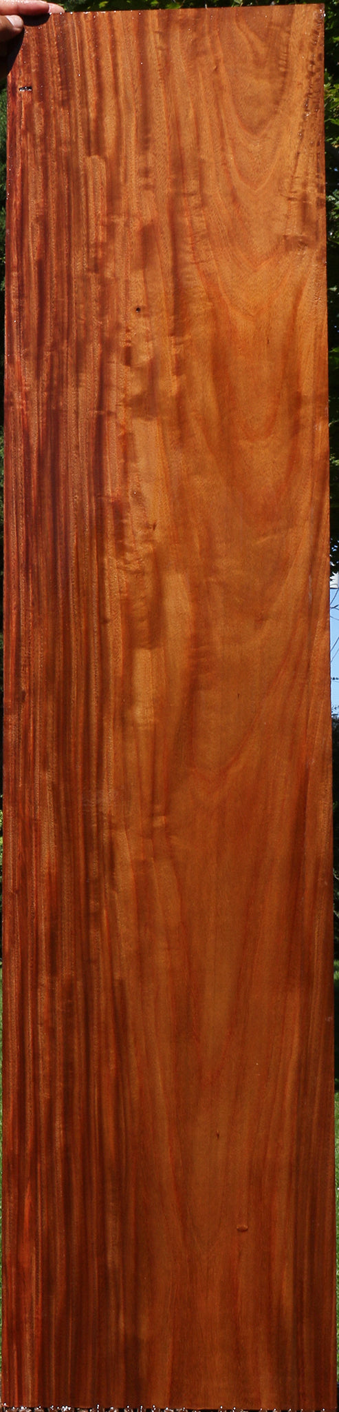 This Santos Mahogany wood has been hand selected for color and figure. It has been kiln dried and surfaced on two sides. Some boards are suitable for guitars or high end woodworking. This lumber has wonderful workability. A slight 1/16" to 1/8" bow or twist may be present in boards over 36" long. This piece has worm holes. Please see pictures for details.
