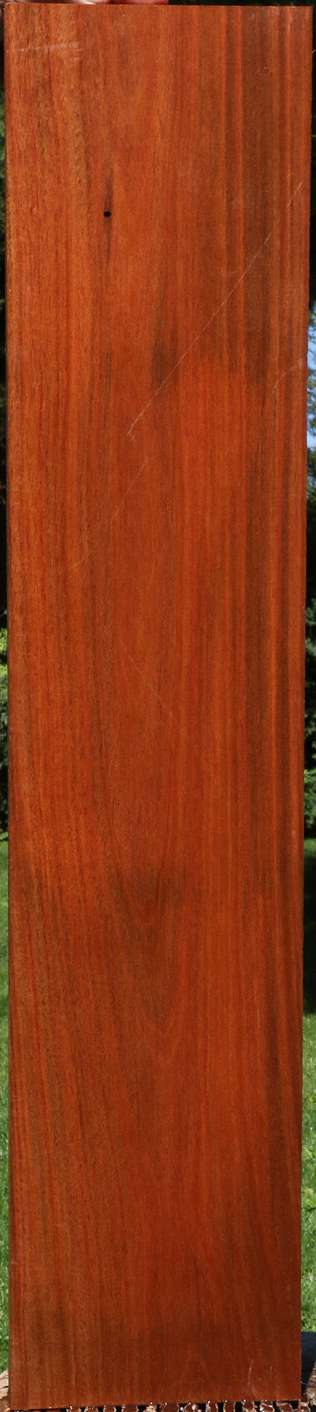 This Santos Mahogany wood has been hand selected for color and figure. It has been kiln dried and surfaced on two sides. Some boards are suitable for guitars or high end woodworking. This lumber has wonderful workability. A slight 1/16" to 1/8" bow or twist may be present in boards over 36" long. This piece has worm holes. Please see pictures for details.