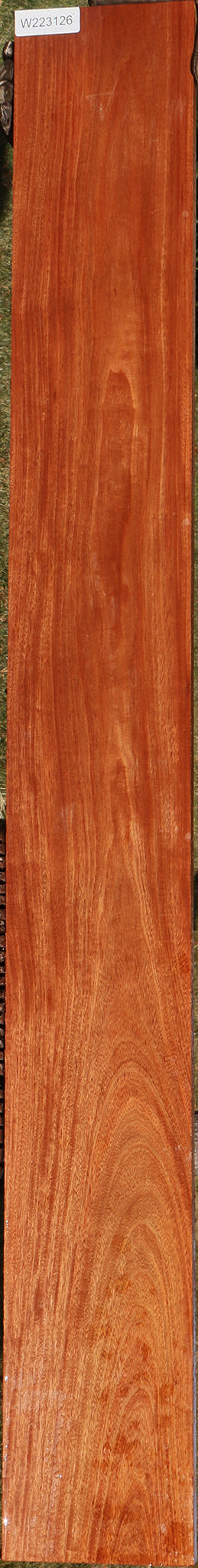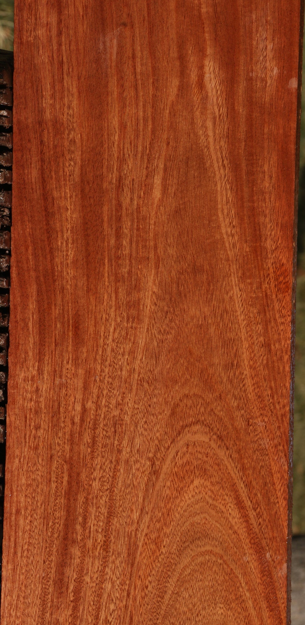 This Santos Mahogany wood has been hand selected for color and figure. It has been kiln dried and surfaced on two sides. Some boards are suitable for guitars or high end woodworking. This lumber has wonderful workability. A slight 1/16" to 1/8" bow or twist may be present in boards over 36" long. This piece has bug holes. Please see pictures for details.