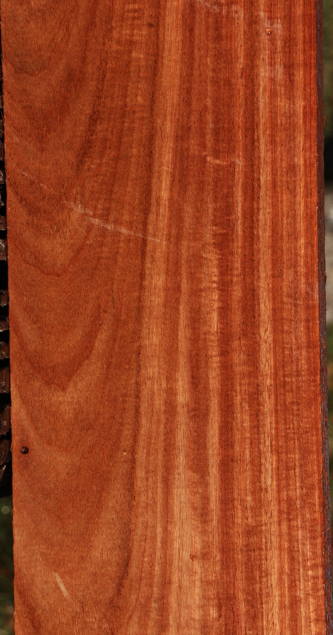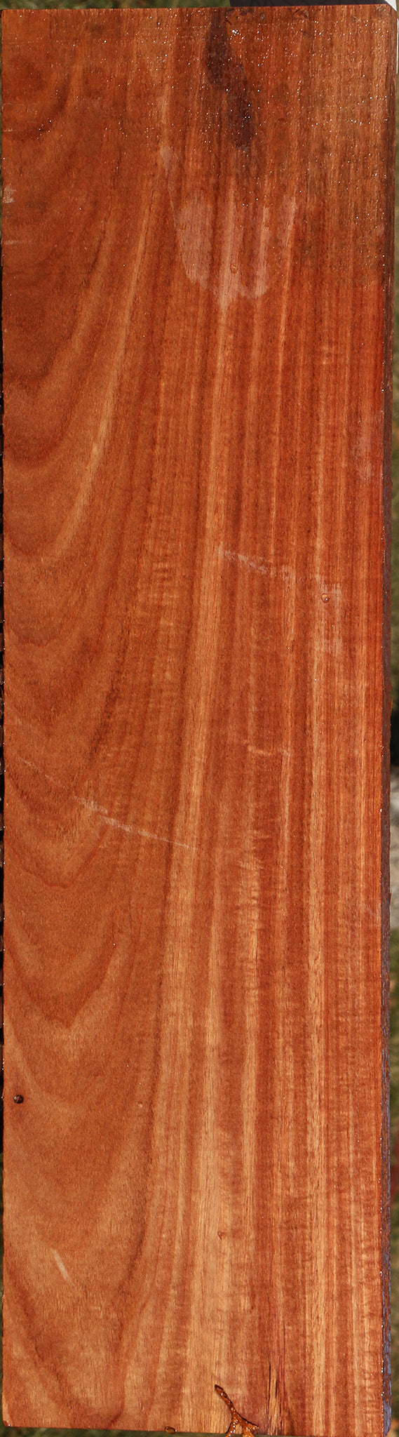 This Santos Mahogany wood has been hand selected for color and figure. It has been kiln dried and surfaced on two sides. Some boards are suitable for guitars or high end woodworking. This lumber has wonderful workability. A slight 1/16" to 1/8" bow or twist may be present in boards over 36" long. This piece has bug holes. Please see pictures for details.