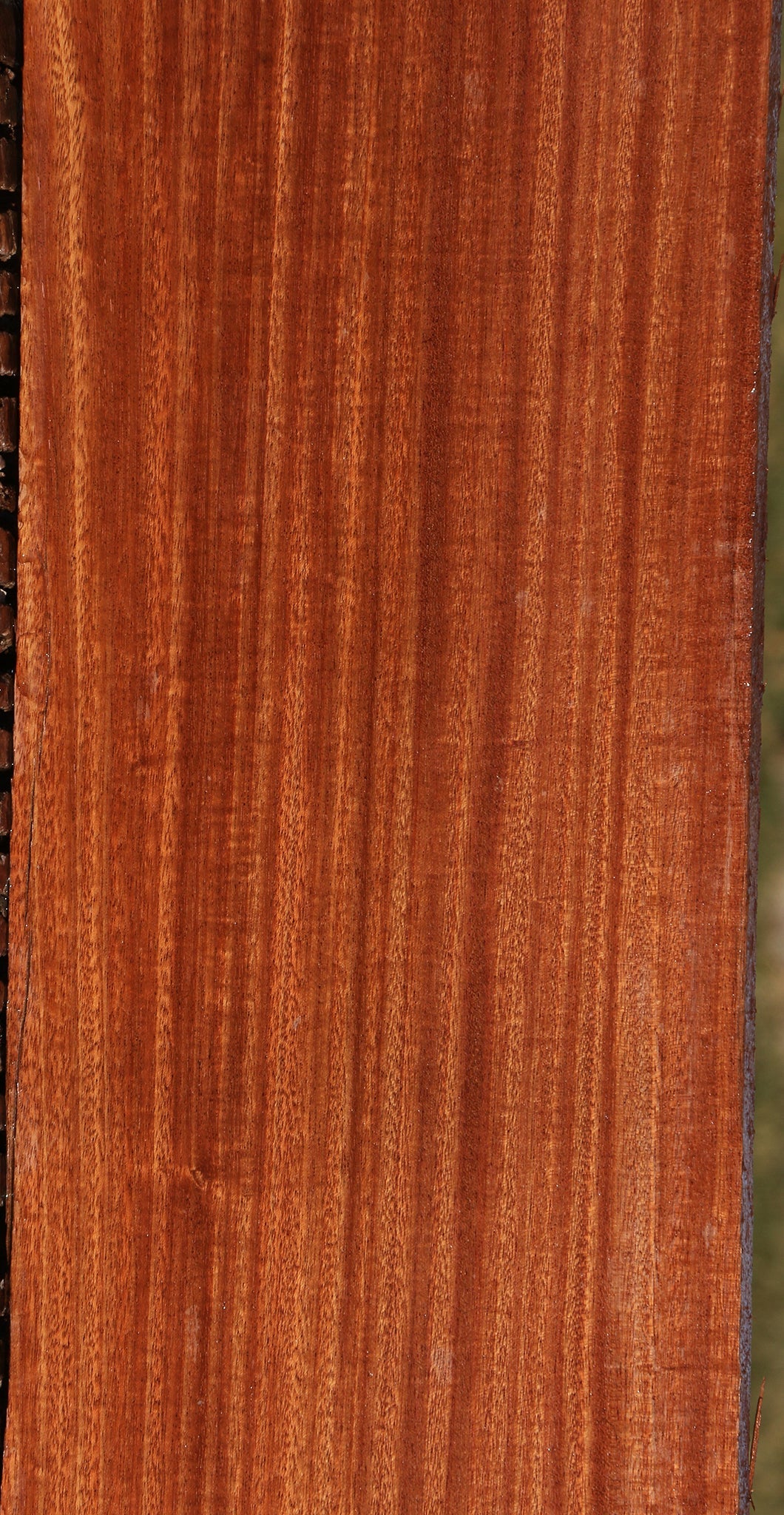 This Santos Mahogany wood has been hand selected for color and figure. It has been kiln dried and surfaced on two sides. Some boards are suitable for guitars or high end woodworking. This lumber has wonderful workability. A slight 1/16" to 1/8" bow or twist may be present in boards over 36" long. This piece has splits. Please see pictures for details.