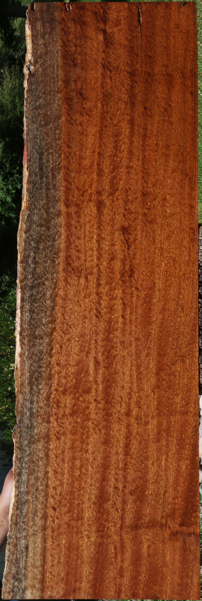 This iridescent and easily workable Sapele is a fantastic choice for fine woodworking projects. Kiln dried and surfaced on two sides, you'll find a range of color and figure in this premium stock. Pieces wider than 8" may have a slight cup or twist. Pieces longer than 36" may have a minor bow or twist. An occasional surface check may be present. Live edge boards contain slight edge checking. See photos for varying degrees of beautiful figure and color! This piece has checks. Please see pictures for details.