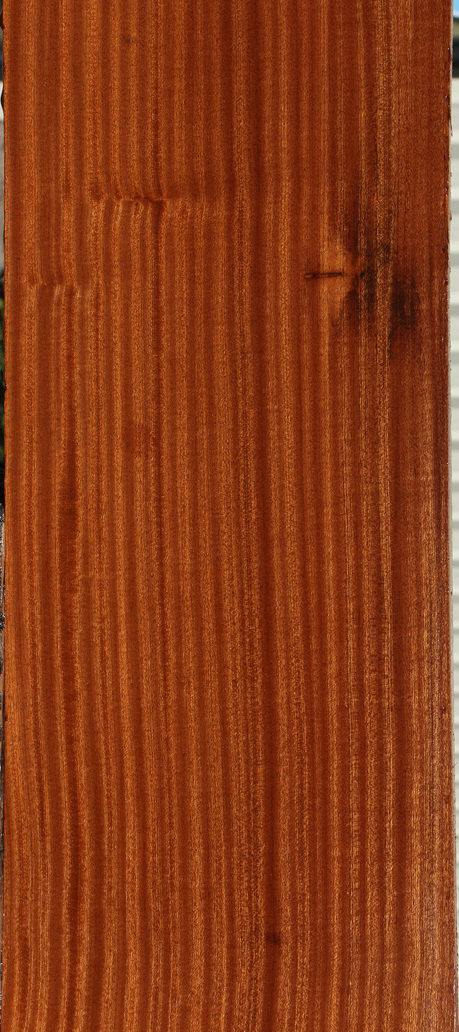 This iridescent and easily workable Sapele is a fantastic choice for fine woodworking projects. Kiln dried and surfaced on two sides, you'll find a range of color and figure in this premium stock. Pieces wider than 8" may have a slight cup or twist. Pieces longer than 36" may have a minor 1/16" to 1/8" bow or twist. See photos for varying degrees of beautiful figure and color! This piece has planer skip, inclusions, and a split. Please see pictures for details.