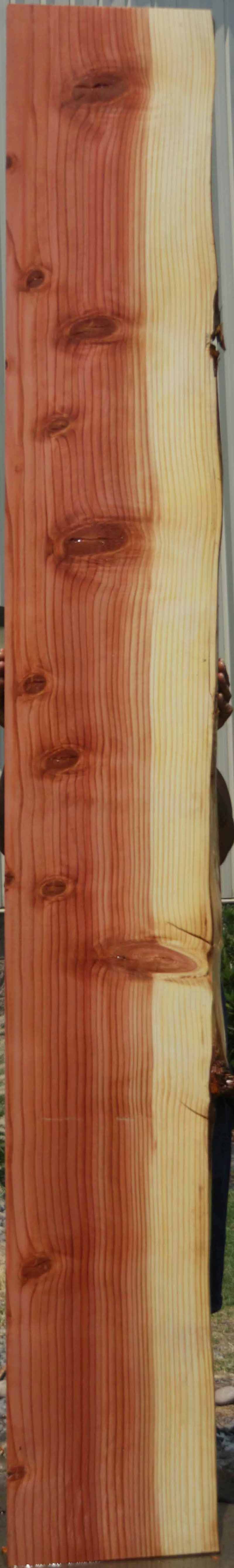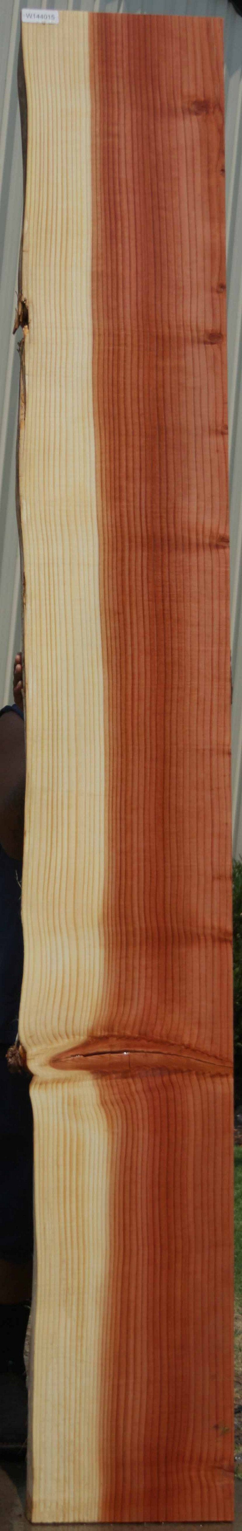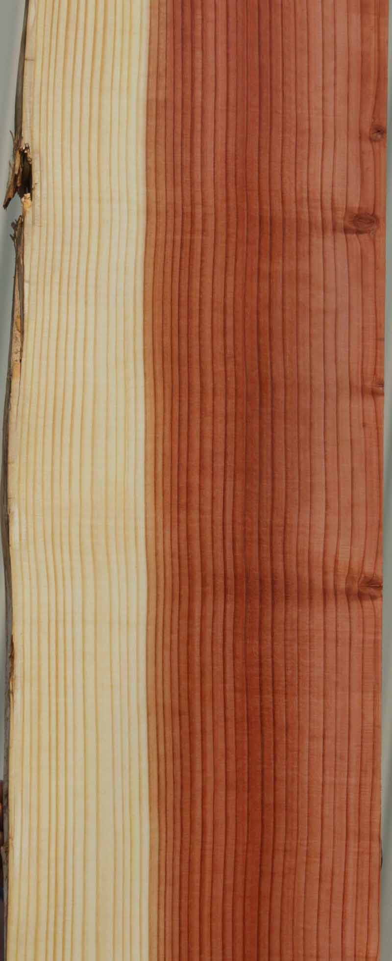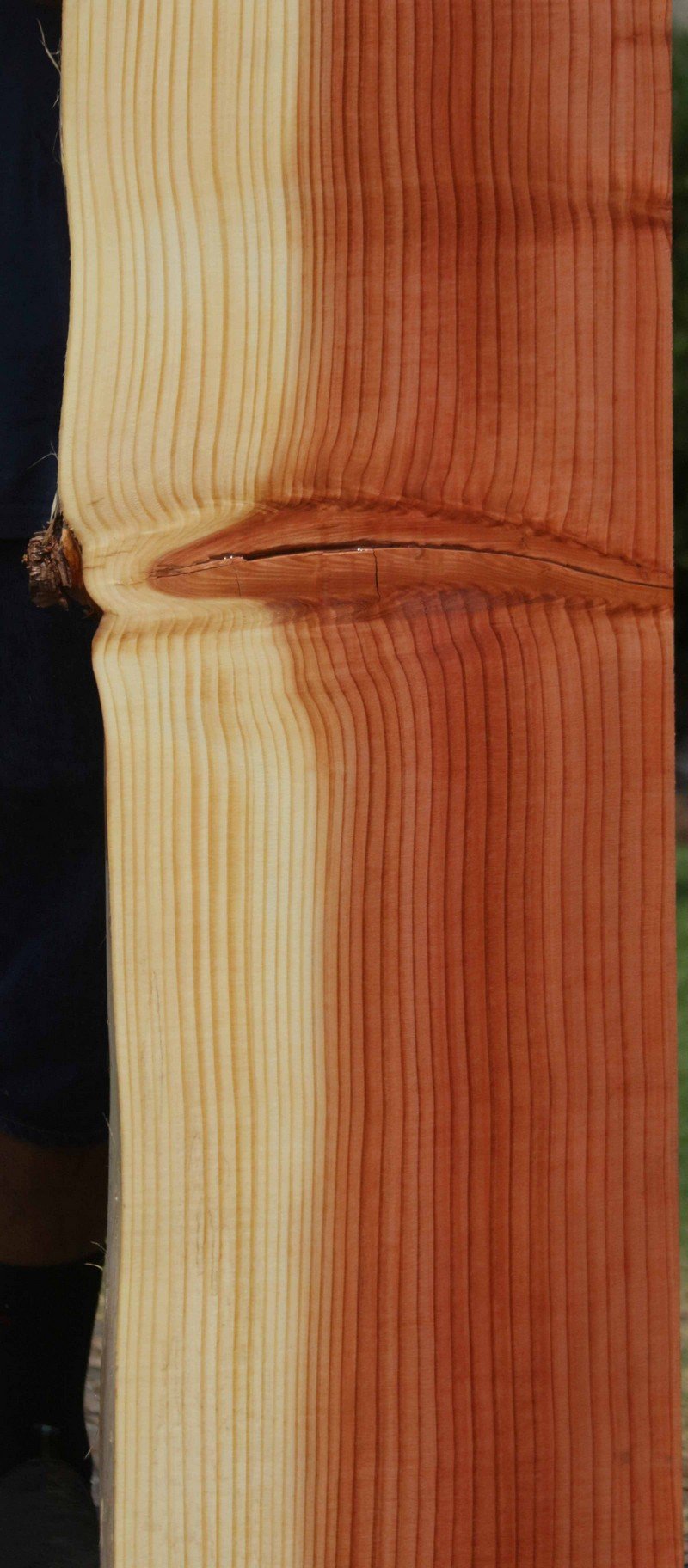Giant Sequoia, Sequoiadendron giganteum, is the most massive tree on earth. It grows naturally in a very small area of California that ranges 260 miles by 15 miles wide in the Sierra Nevadas. All of the Sequoia that we cut is from trees that were planted in cities and houses. None of the wood is from the wild forests. Sequoia is light and cuts easily. Colors are hues of pink/red and purple and the sapwood is a clear white. This piece ships freight. If you would like it cut in half, we will be happy to provide a quote for UPS Ground shipping.