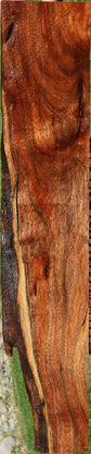 This Silver Wattle wood was cut from two very large logs that had a good amount of color and fiddleback. It is kiln dried and has been surfaced on two sides. A minor end or edge check may be present. Boards over 36" in length may have a 1/16" to 1/8" bow or twist present. Some boards have spalting which can be stable or soft in areas, but can easily be stabilized with CA glue or other stabilization methods. We have cut the majority of soft spalting off of the boards. Silver Wattle is easy to work and takes a good finish! This piece has splits and inclusions. Please see pictures for details.