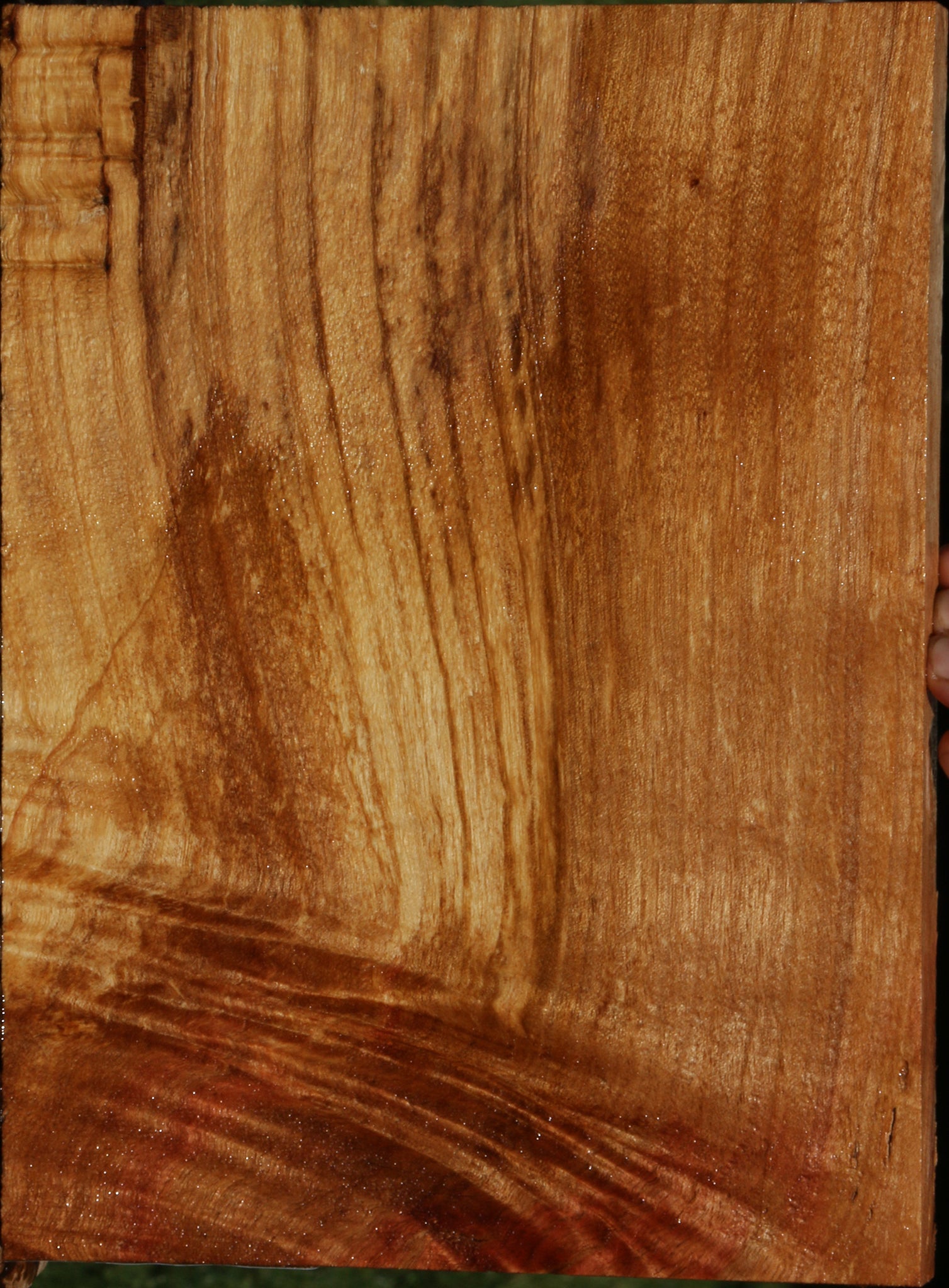 This Silver Wattle wood was cut from two very large logs that had a good amount of color and fiddleback. It is kiln dried and has been surfaced on two sides. A minor end or edge check may be present. Boards over 36" in length may have a 1/16" to 1/8" bow or twist present. Some boards have spalting which can be stable or soft in areas, but can easily be stabilized with CA glue or other stabilization methods. We have cut the majority of soft spalting off of the boards. Silver Wattle is easy to work and takes a good finish! This piece has inclusions and checks. Please see pictures for details.