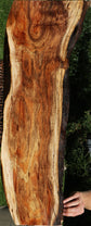 This Silver Wattle wood was cut from two very large logs that had a good amount of color and fiddleback. It is kiln dried and has been surfaced on two sides. A minor end or edge check may be present. Boards over 36" in length may have a 1/16" to 1/8" bow or twist present. Some boards have spalting which can be stable or soft in areas, but can easily be stabilized with CA glue or other stabilization methods. We have cut the majority of soft spalting off of the boards. Silver Wattle is easy to work and takes a good finish! This piece has splits and inclusions. Please see pictures for details. Epoxy or resin is recommended. This piece is sold "as is" due to defects and is ineligible for a refund or return.