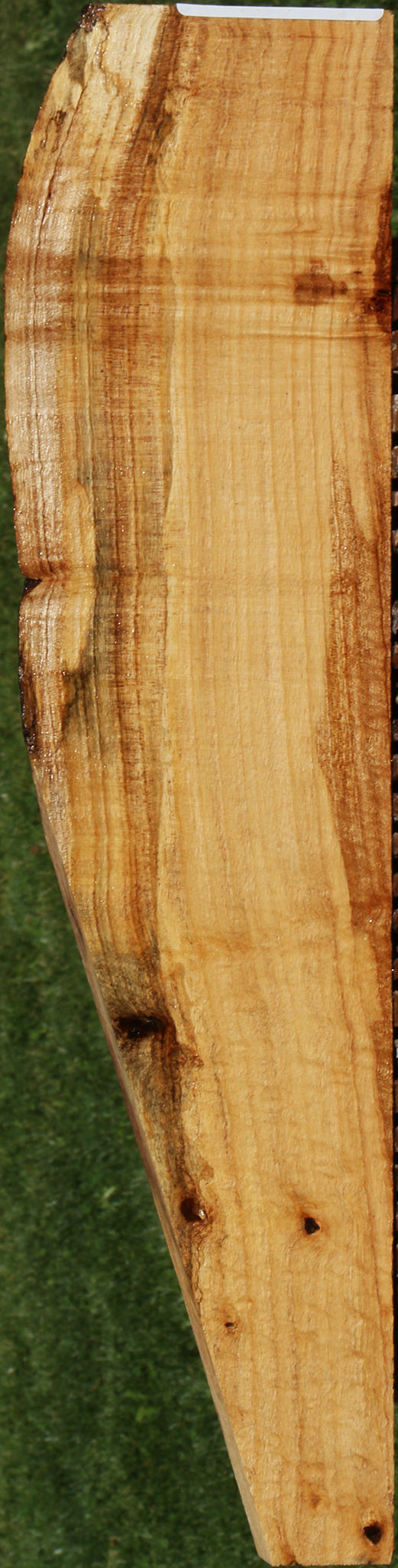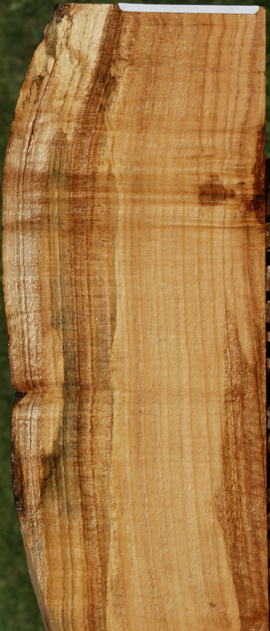 This Silver Wattle wood was cut from two very large logs that had a good amount of color and fiddleback. It is kiln dried and has been surfaced on two sides. A minor end or edge check may be present. Boards over 36" in length may have a 1/16" to 1/8" bow or twist present. Some boards have spalting which can be stable or soft in areas, but can easily be stabilized with CA glue or other stabilization methods. We have cut the majority of soft spalting off of the boards. Silver Wattle is easy to work and takes a good finish! This piece has splits and inclusions. Please see pictures for details.