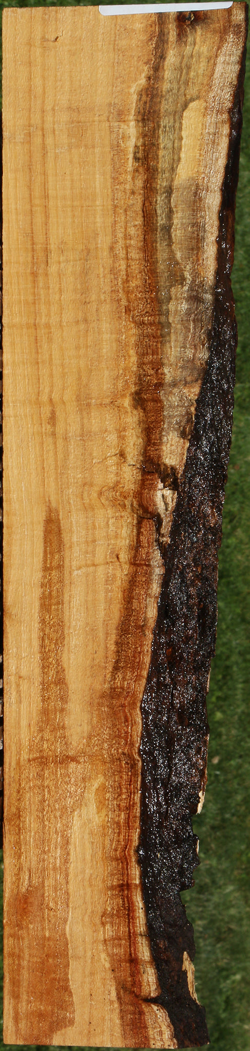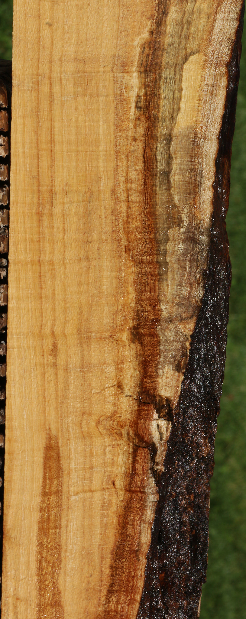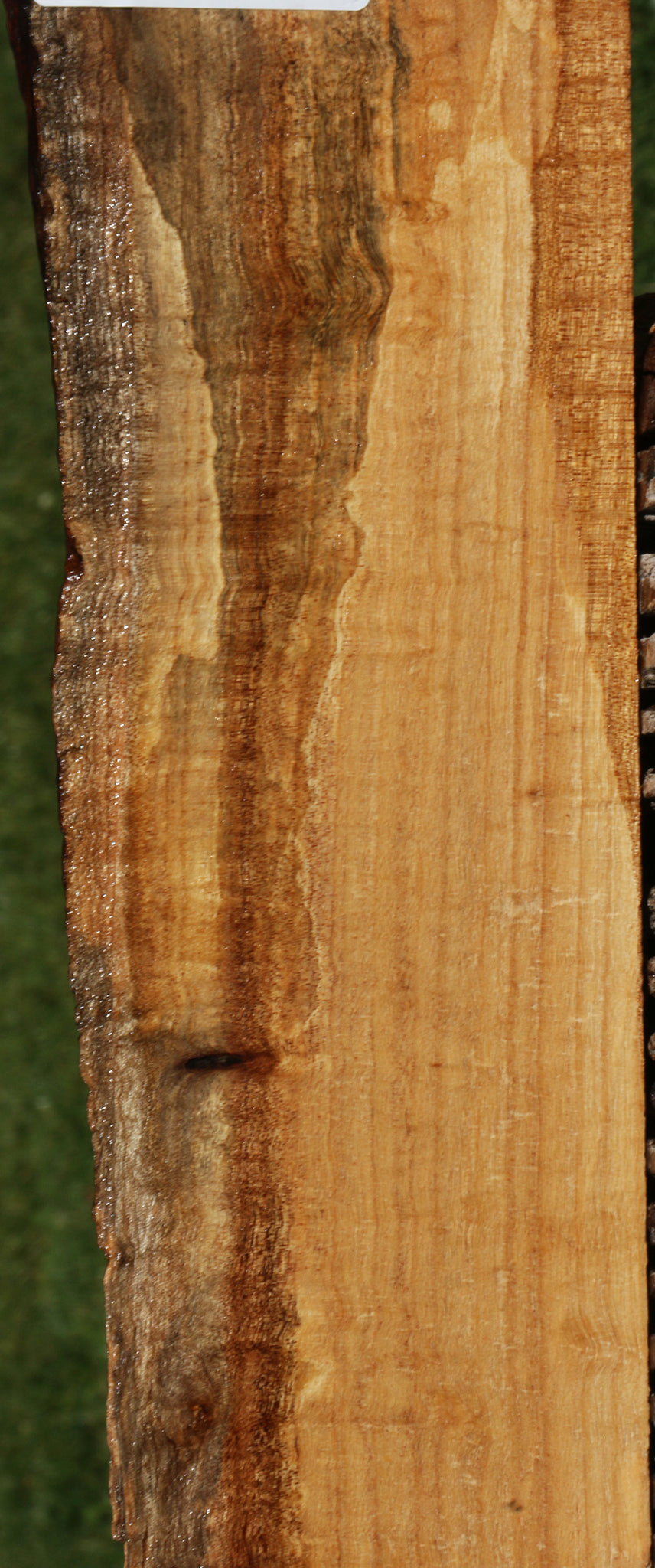 This Silver Wattle wood was cut from two very large logs that had a good amount of color and fiddleback. It is kiln dried and has been surfaced on two sides. A minor end or edge check may be present. Boards over 36" in length may have a 1/16" to 1/8" bow or twist present. Some boards have spalting which can be stable or soft in areas, but can easily be stabilized with CA glue or other stabilization methods. We have cut the majority of soft spalting off of the boards. Silver Wattle is easy to work and takes a good finish! This piece has splits and inclusions. Please see pictures for details.