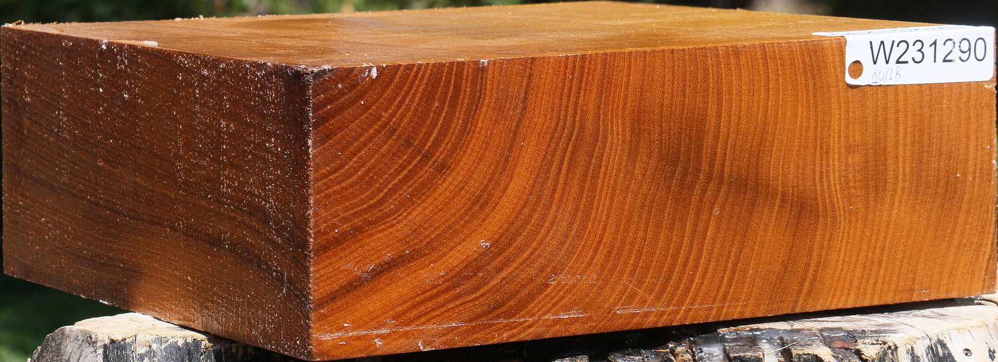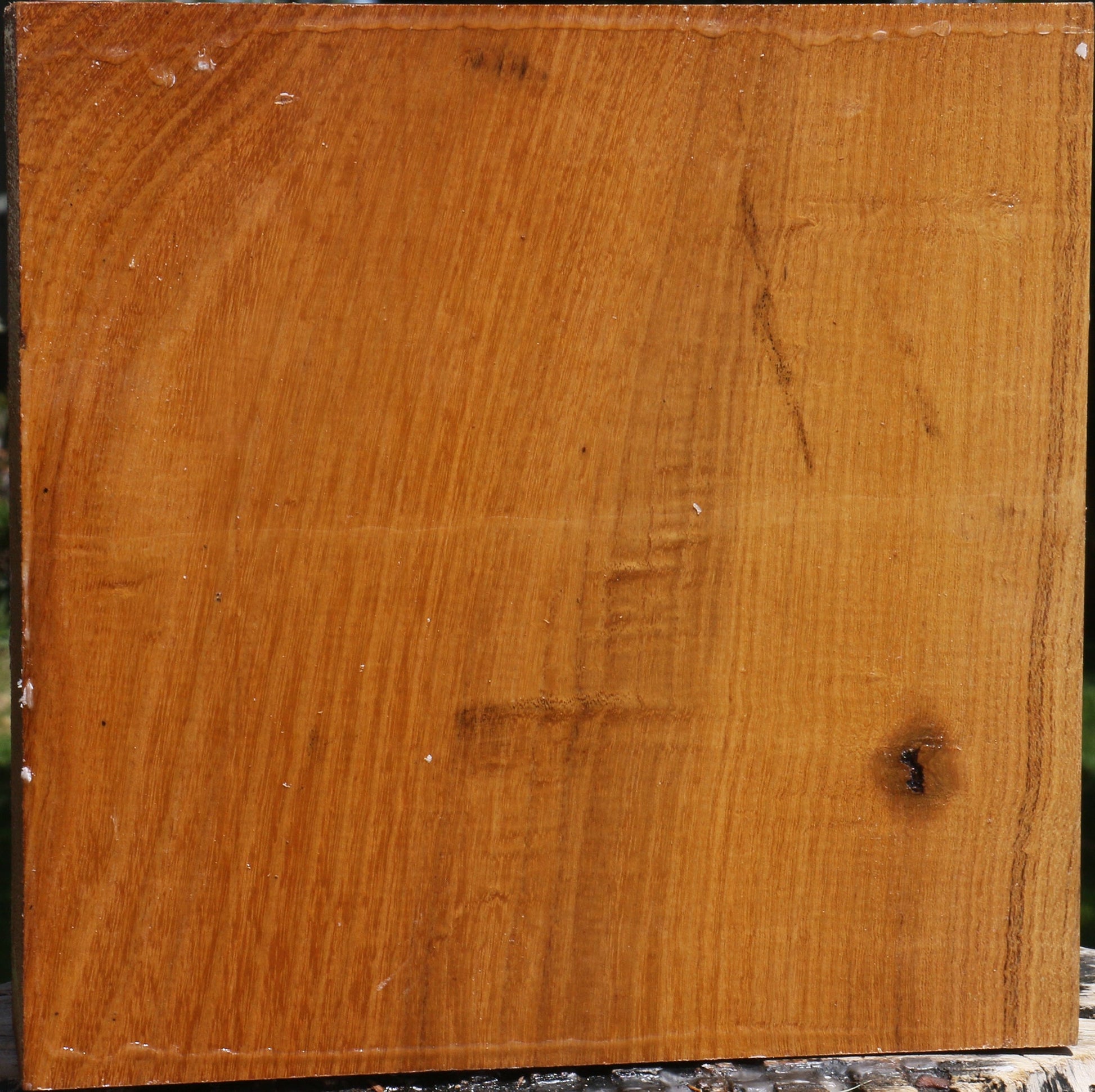 This Silver Wattle wood was sourced from two exceptionally large logs, both displaying rich color and nice fiddleback. After seasoning for three years and losing roughly half of their moisture content, the logs were milled into blanks, which are still considered freshly cut. Each blank has been surfaced on two sides and sealed with wax to preserve quality. Minor end or edge checks may be present. Silver Wattle is easy to work with and finishes beautifully.