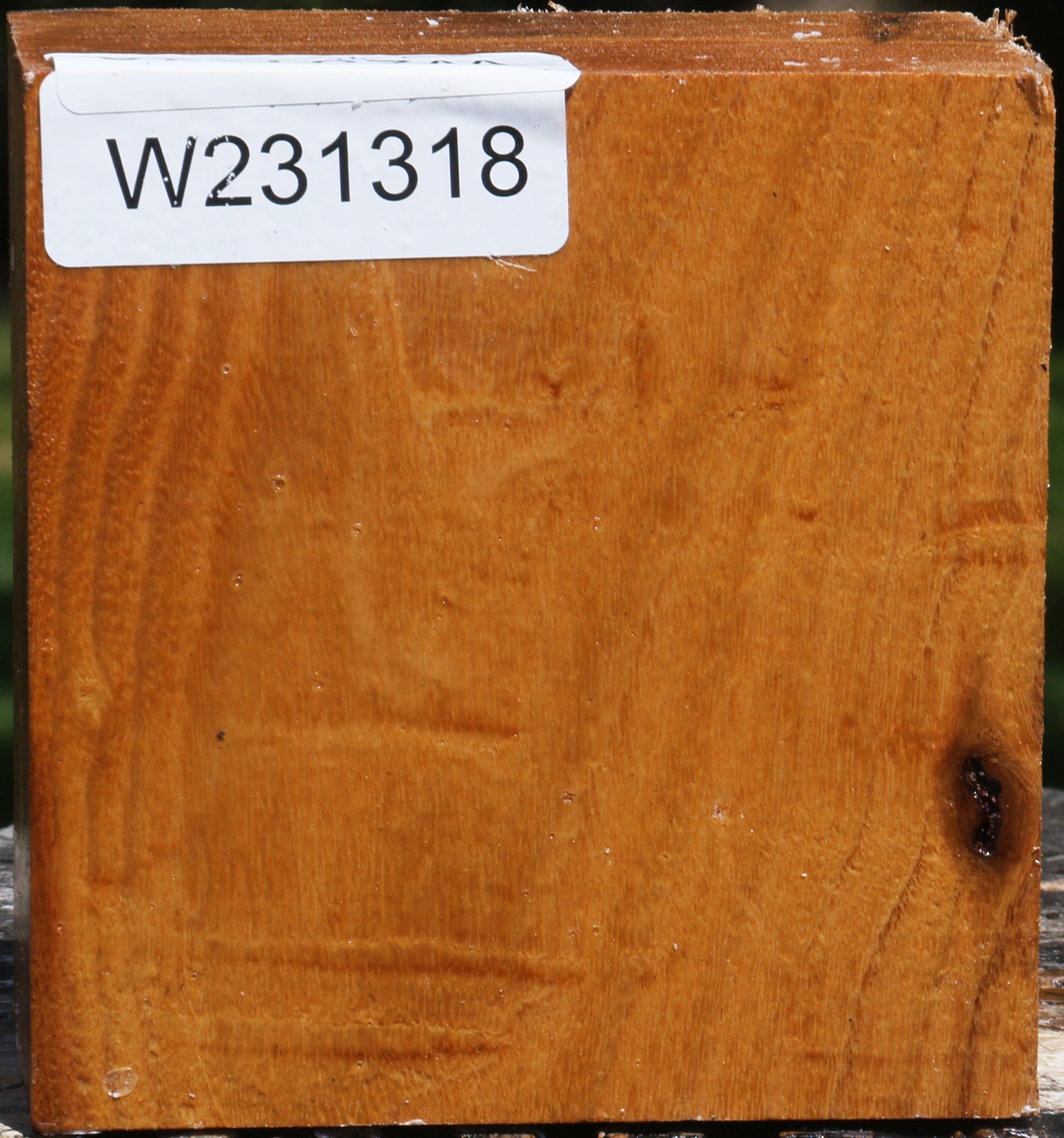 This Silver Wattle wood was sourced from two exceptionally large logs, both displaying rich color and nice fiddleback. After seasoning for three years and losing roughly half of their moisture content, the logs were milled into blanks, which are still considered freshly cut. Each blank has been surfaced on two sides and sealed with wax to preserve quality. Minor end or edge checks may be present. Silver Wattle is easy to work with and finishes beautifully. This piece has inclusions. Please see pictures for details.