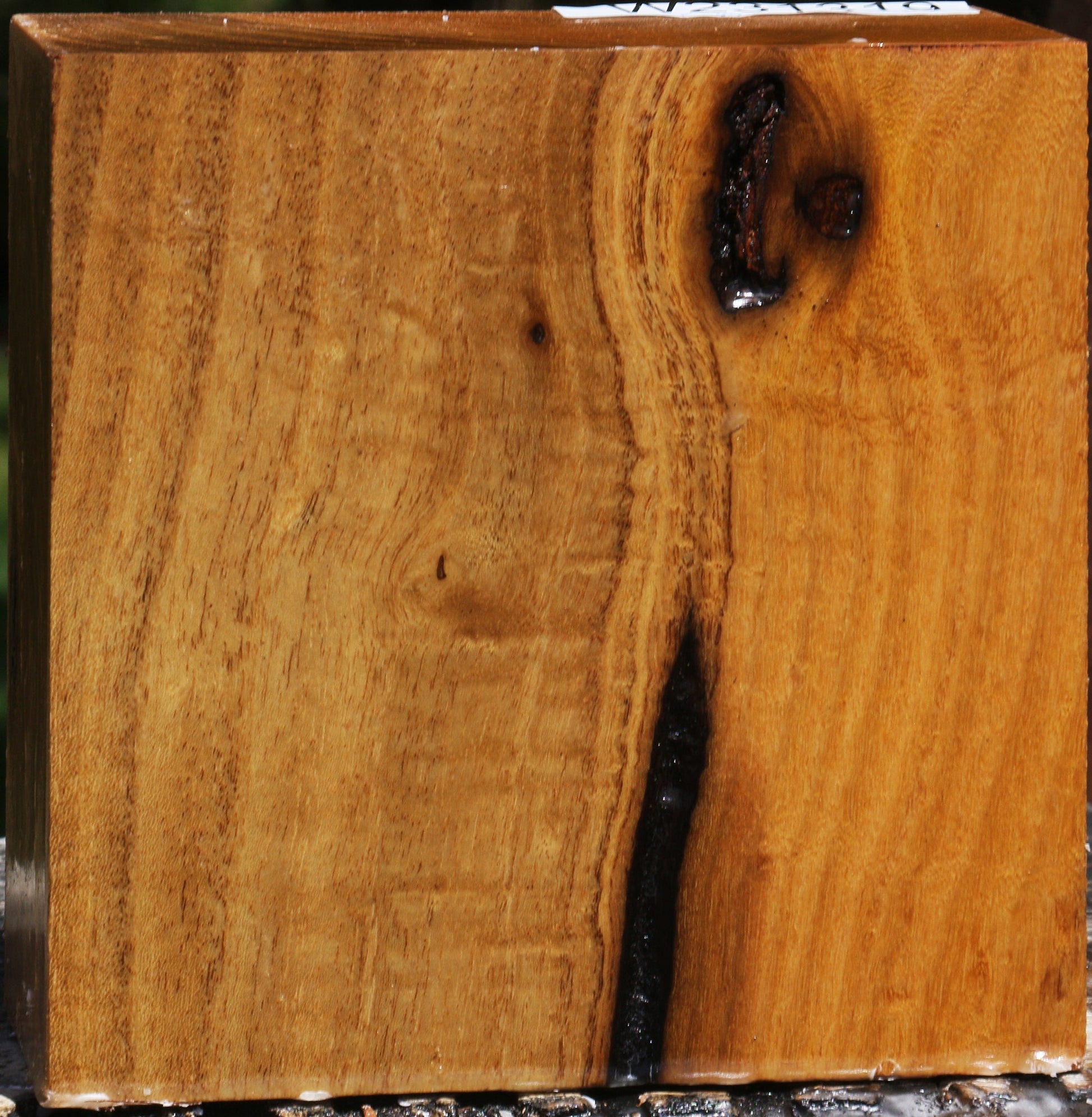 This Silver Wattle wood was sourced from two exceptionally large logs, both displaying rich color and nice fiddleback. After seasoning for three years and losing roughly half of their moisture content, the logs were milled into blanks, which are still considered freshly cut. Each blank has been surfaced on two sides and sealed with wax to preserve quality. Minor end or edge checks may be present. Silver Wattle is easy to work with and finishes beautifully. This piece has inclusions. Please see pictures for details.
