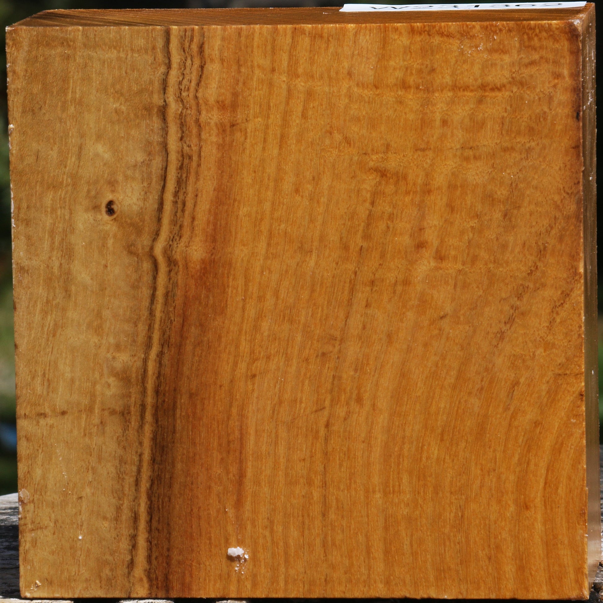 This Silver Wattle wood was sourced from two exceptionally large logs, both displaying rich color and nice fiddleback. After seasoning for three years and losing roughly half of their moisture content, the logs were milled into blanks, which are still considered freshly cut. Each blank has been surfaced on two sides and sealed with wax to preserve quality. Minor end or edge checks may be present. Silver Wattle is easy to work with and finishes beautifully.