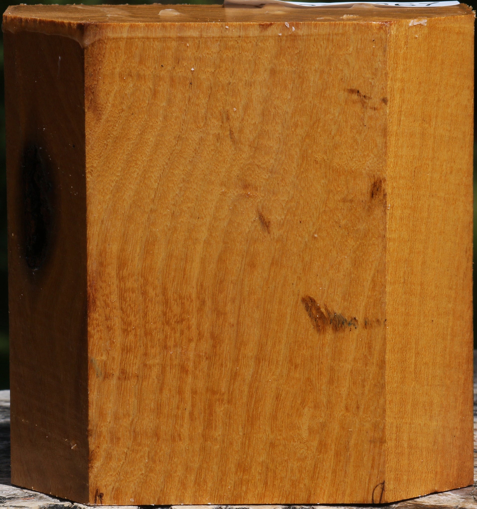 This Silver Wattle wood was sourced from two exceptionally large logs, both displaying rich color and nice fiddleback. After seasoning for three years and losing roughly half of their moisture content, the logs were milled into blanks, which are still considered freshly cut. Each blank has been surfaced on two sides and sealed with wax to preserve quality. Minor end or edge checks may be present. Silver Wattle is easy to work with and finishes beautifully. This piece has inclusions. Please see pictures for details.